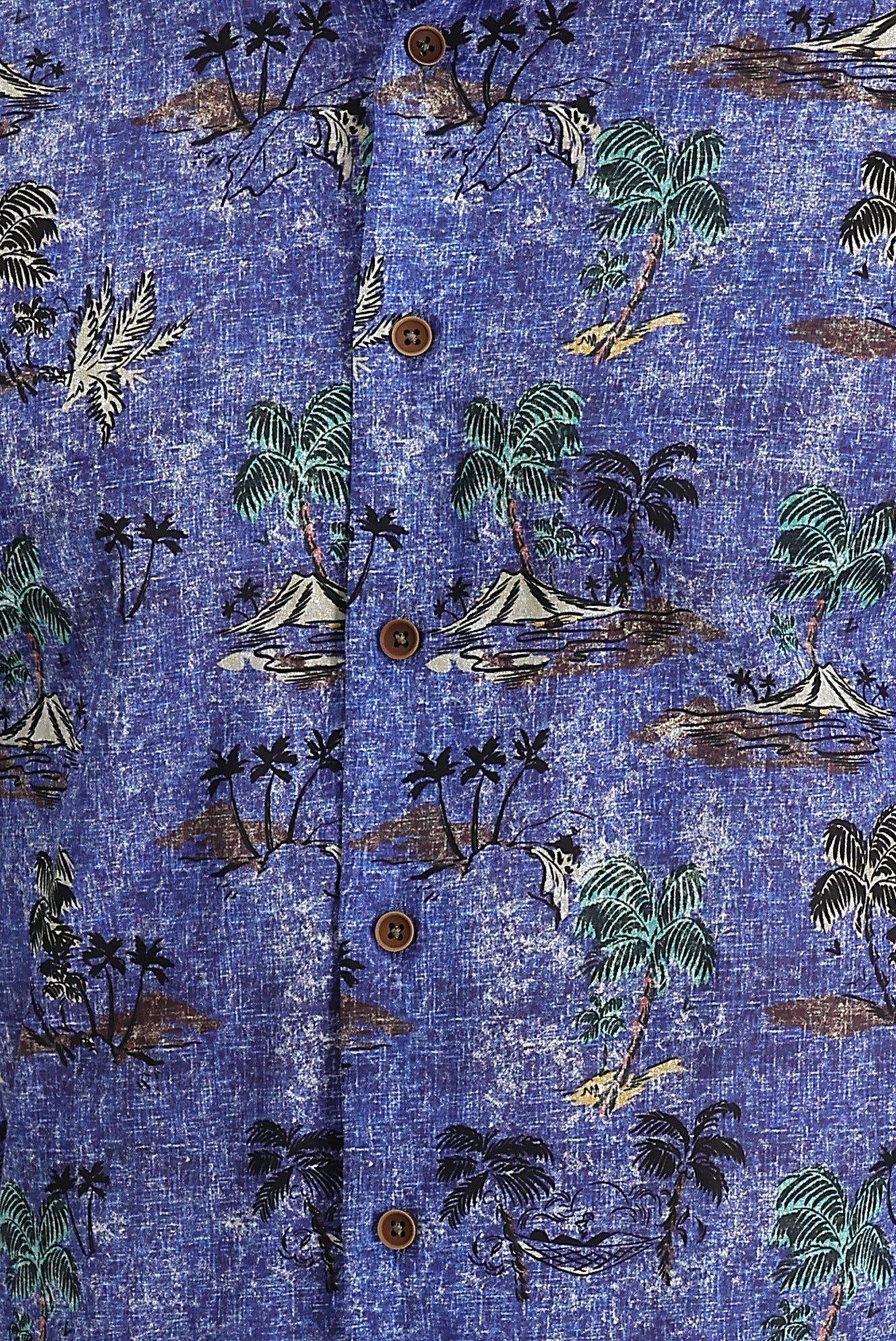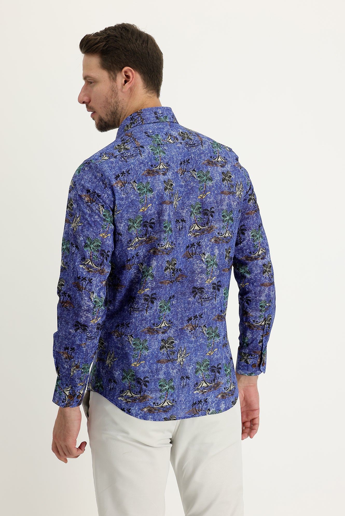 Koyu Mavi Uzun Kol Baskılı Slim Fit Gömlek