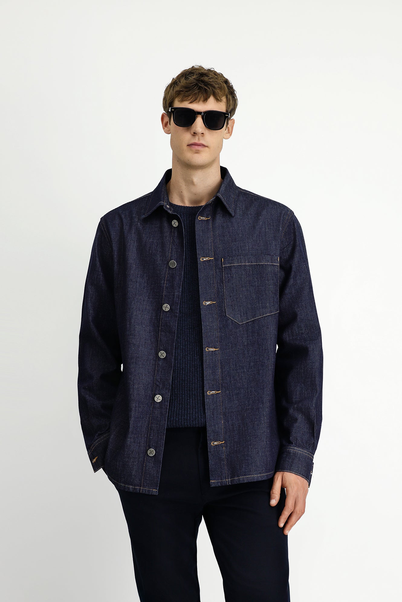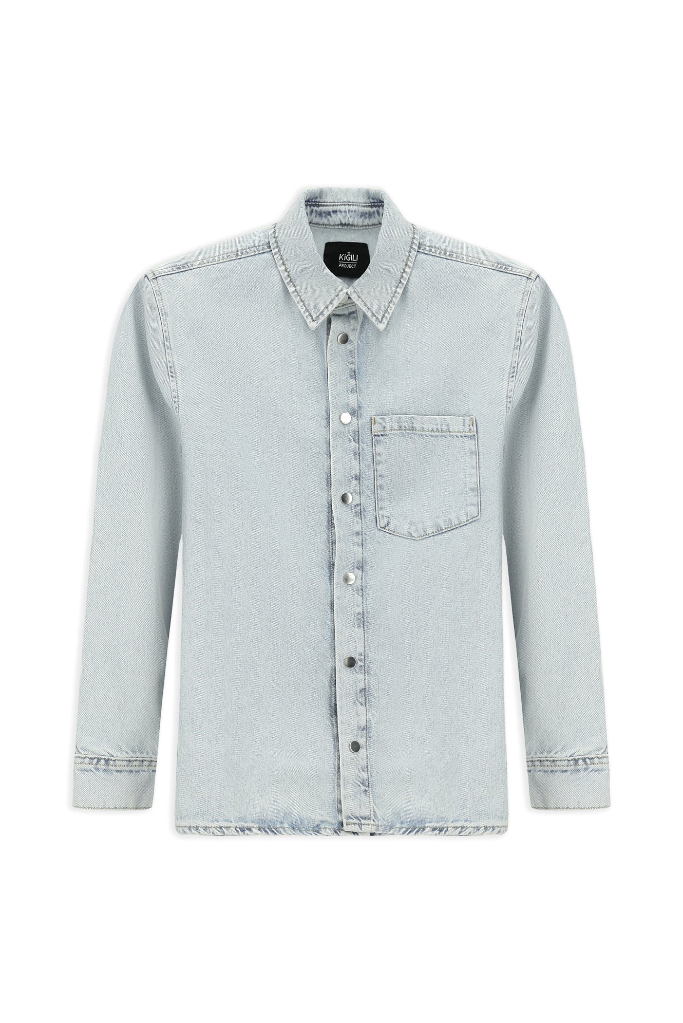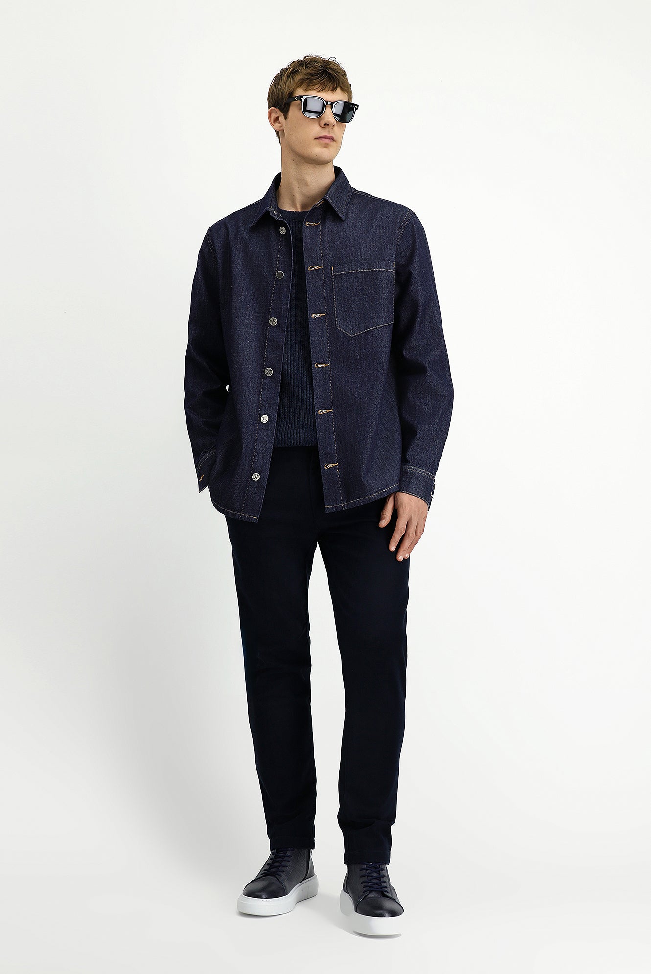 Koyu Mavi Uzun Kol Regular Fit Pamuk Spor Denim Gömlek / Mont