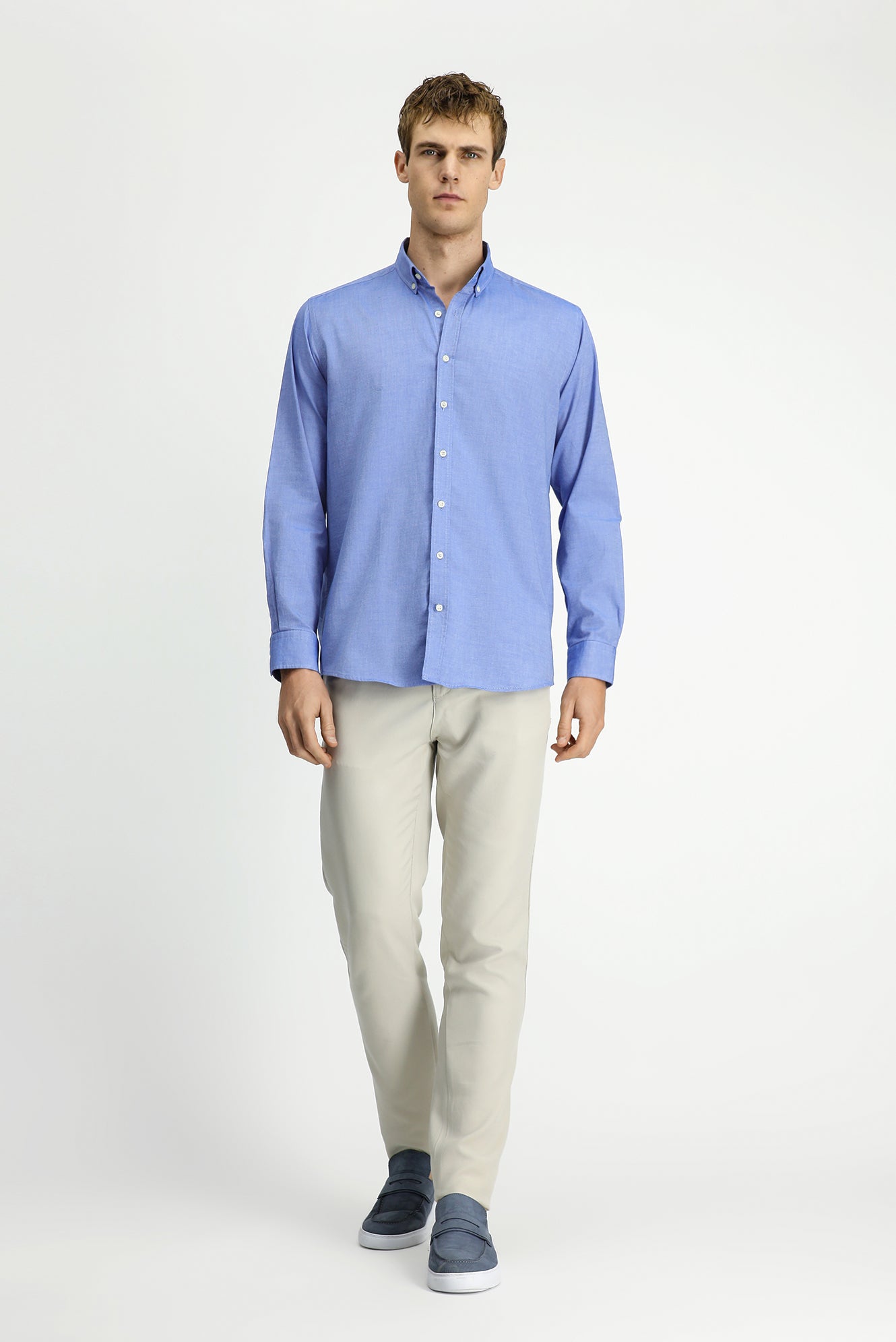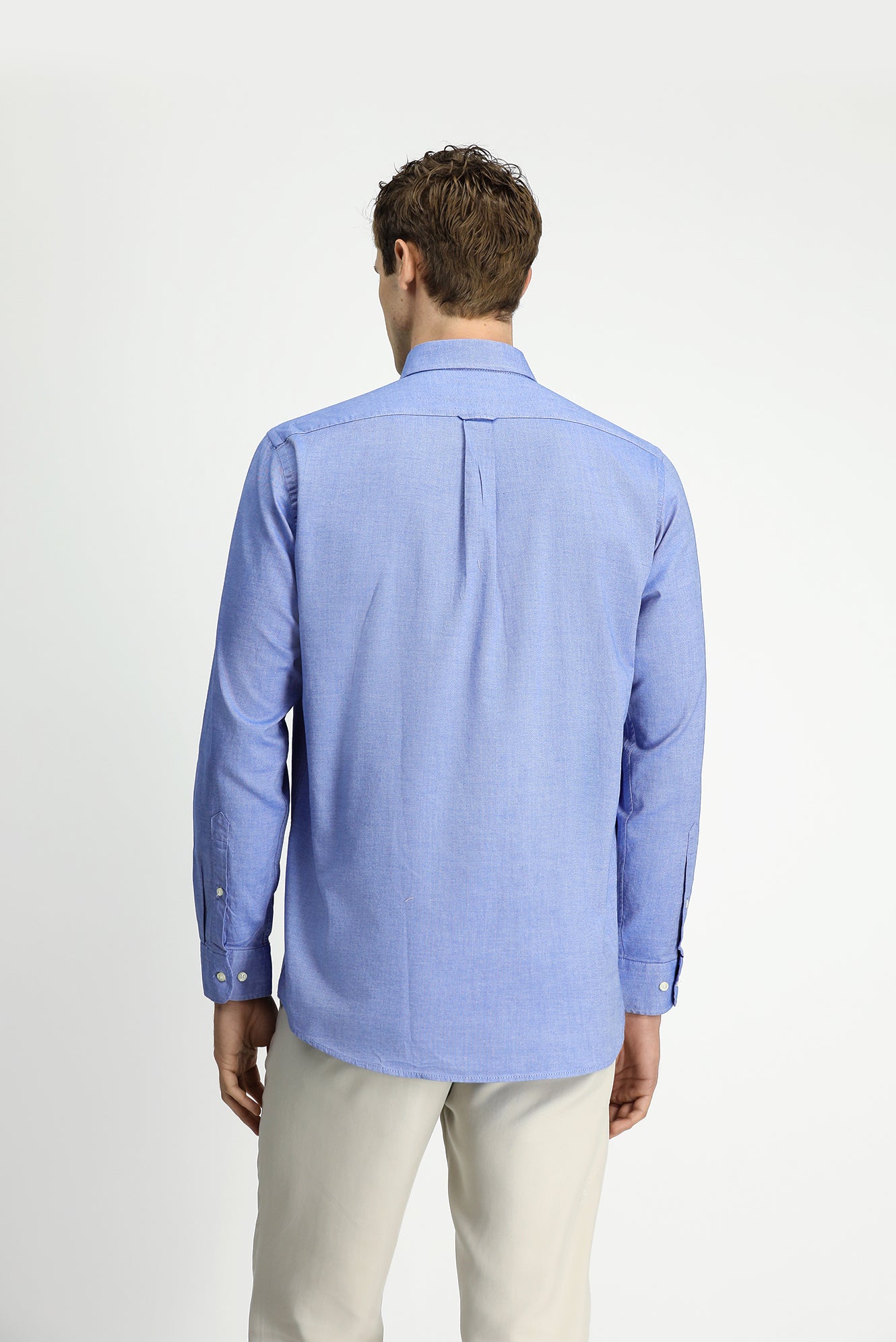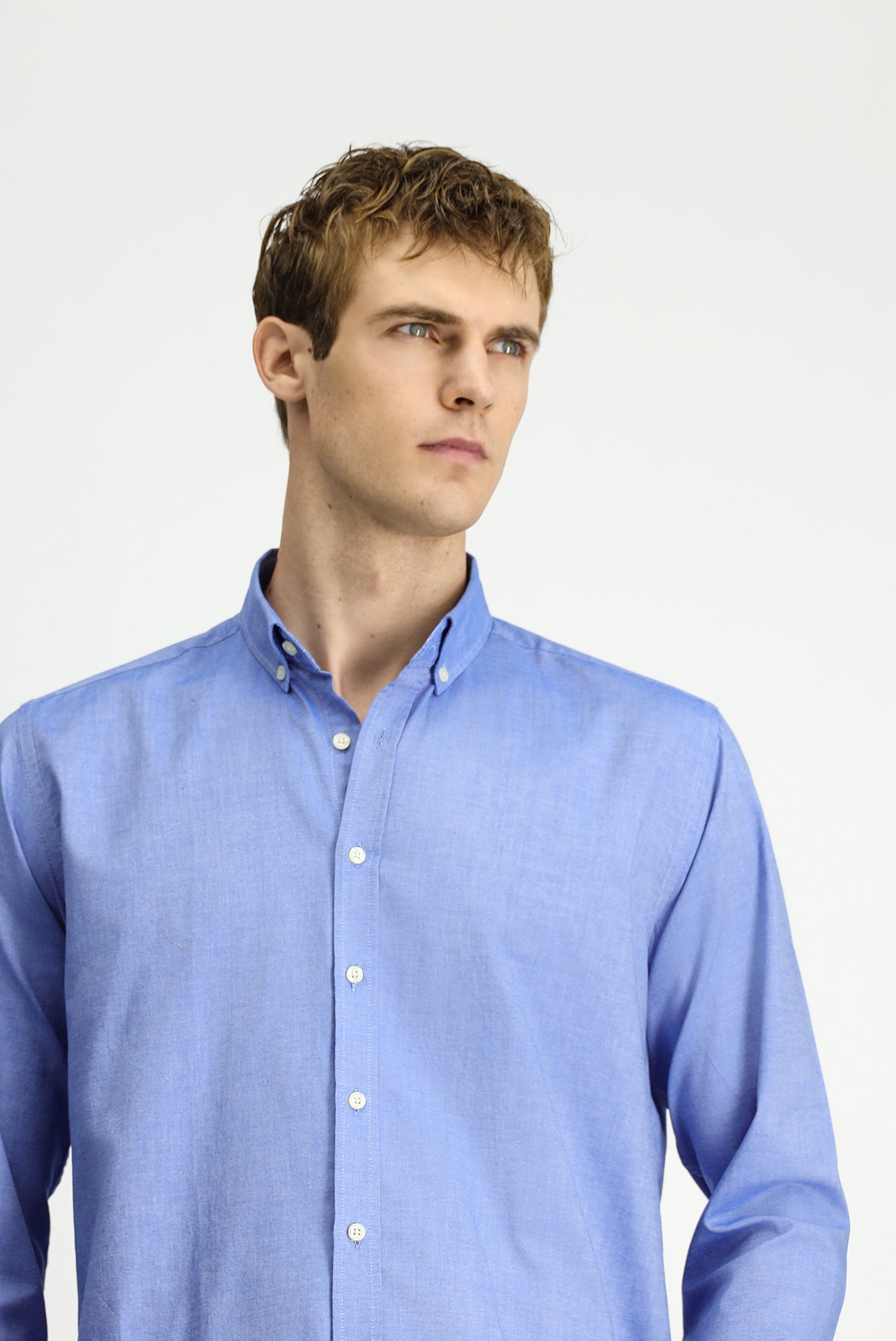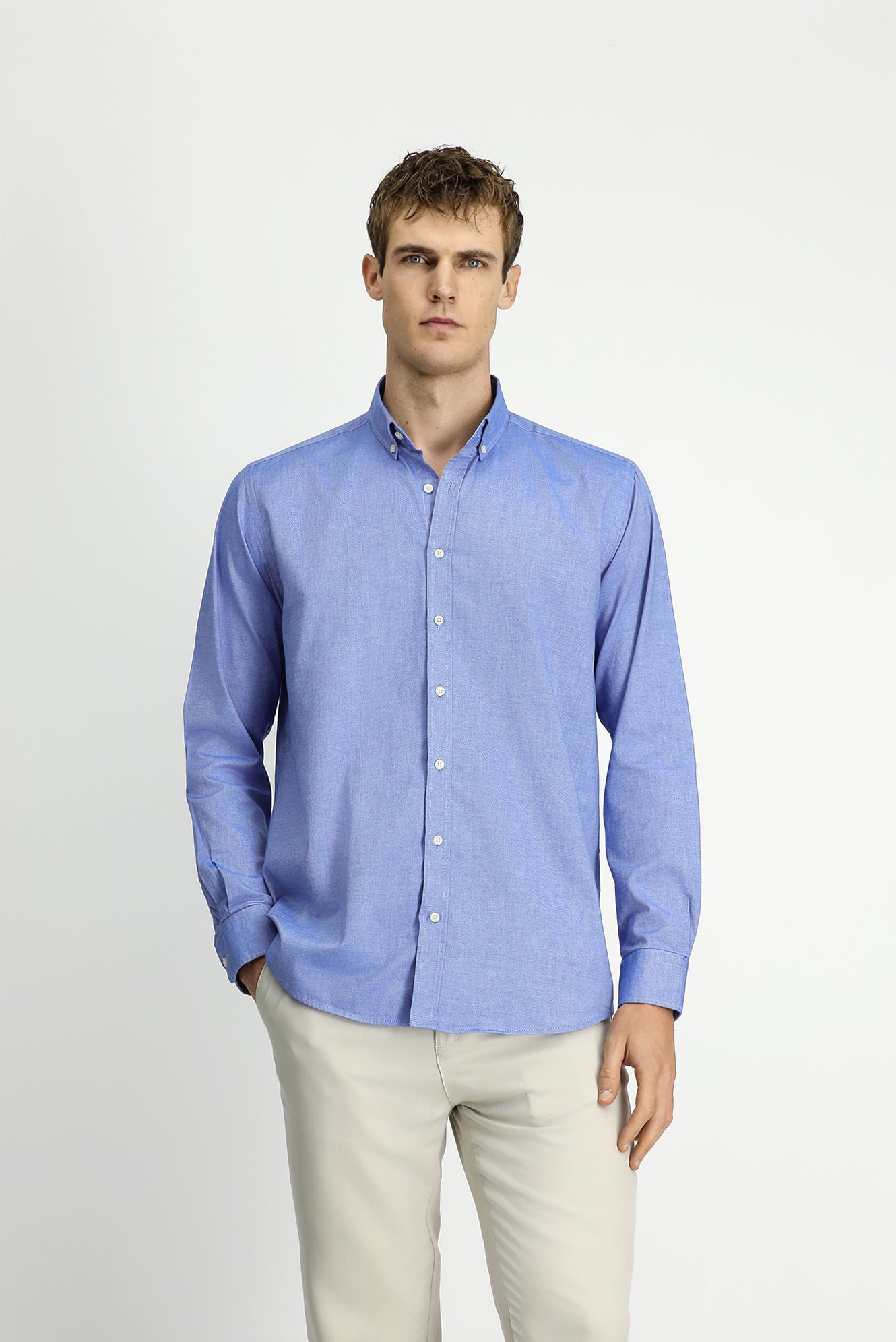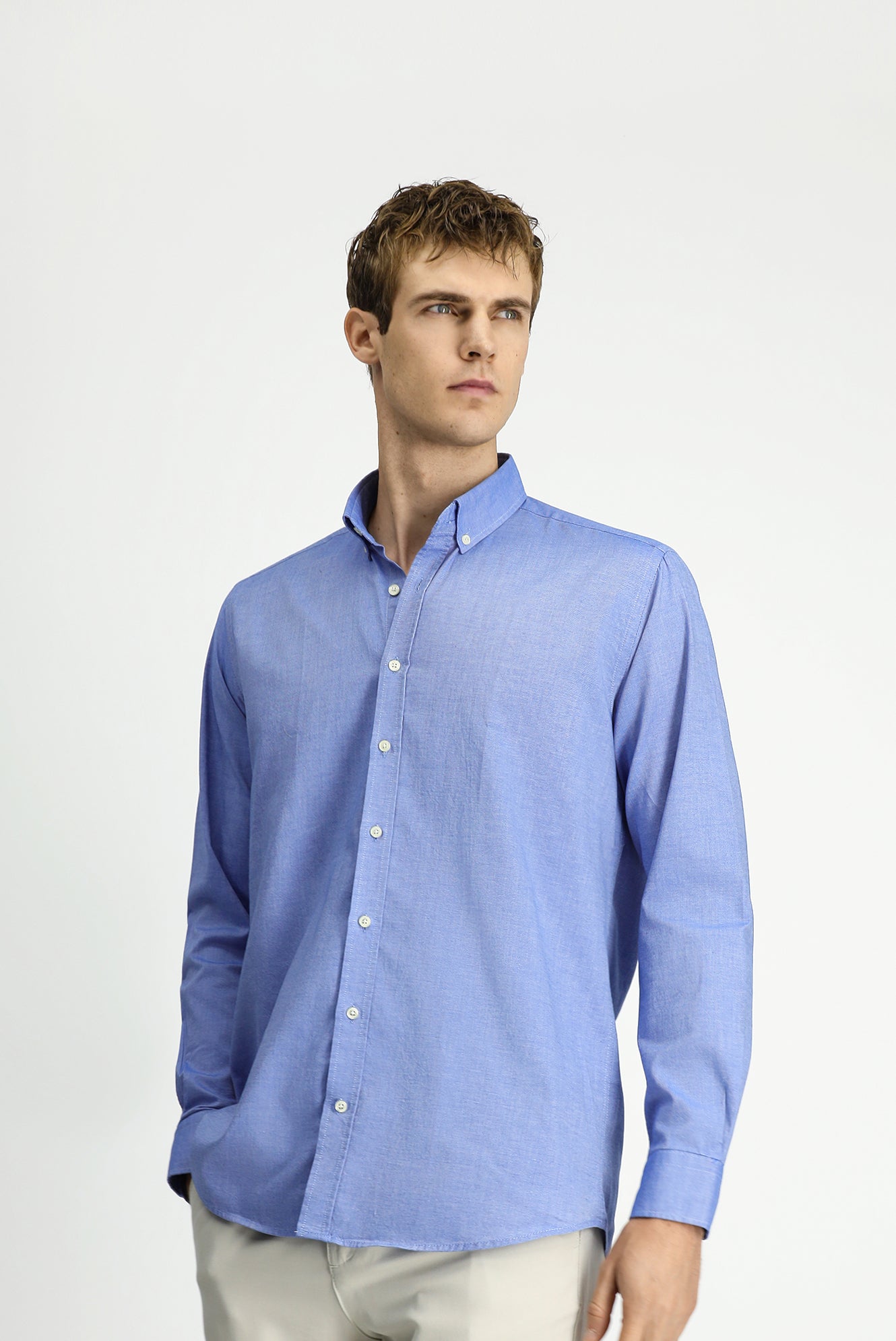 Koyu Mavi Uzun Kol Regular Fit Düğmeli Yaka Oxford Pamuk Gömlek