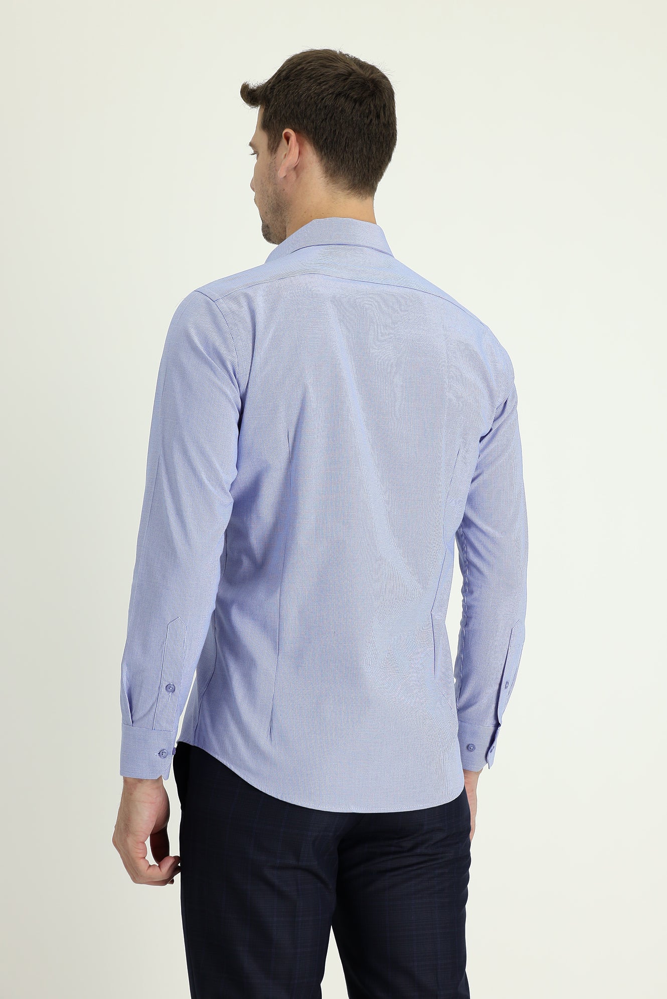 Koyu Mavi Uzun Kol Slim Fit Dar Kesim Klasik Desenli Pamuklu Kolay Ütülenebilir Gömlek