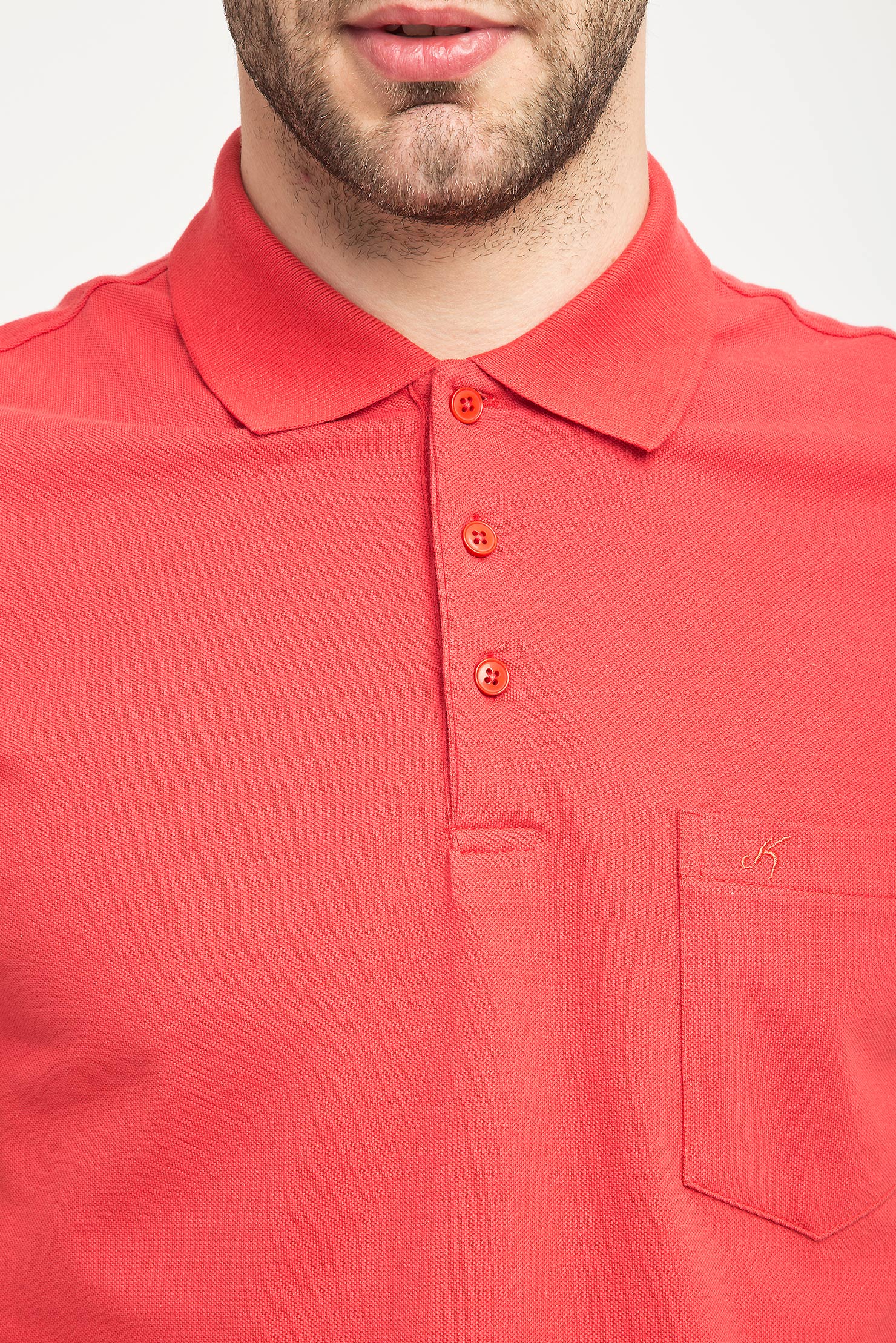 Koyu Nar Çiçeği Cepli Polo Yaka Regular Fit Pamuk Tişört