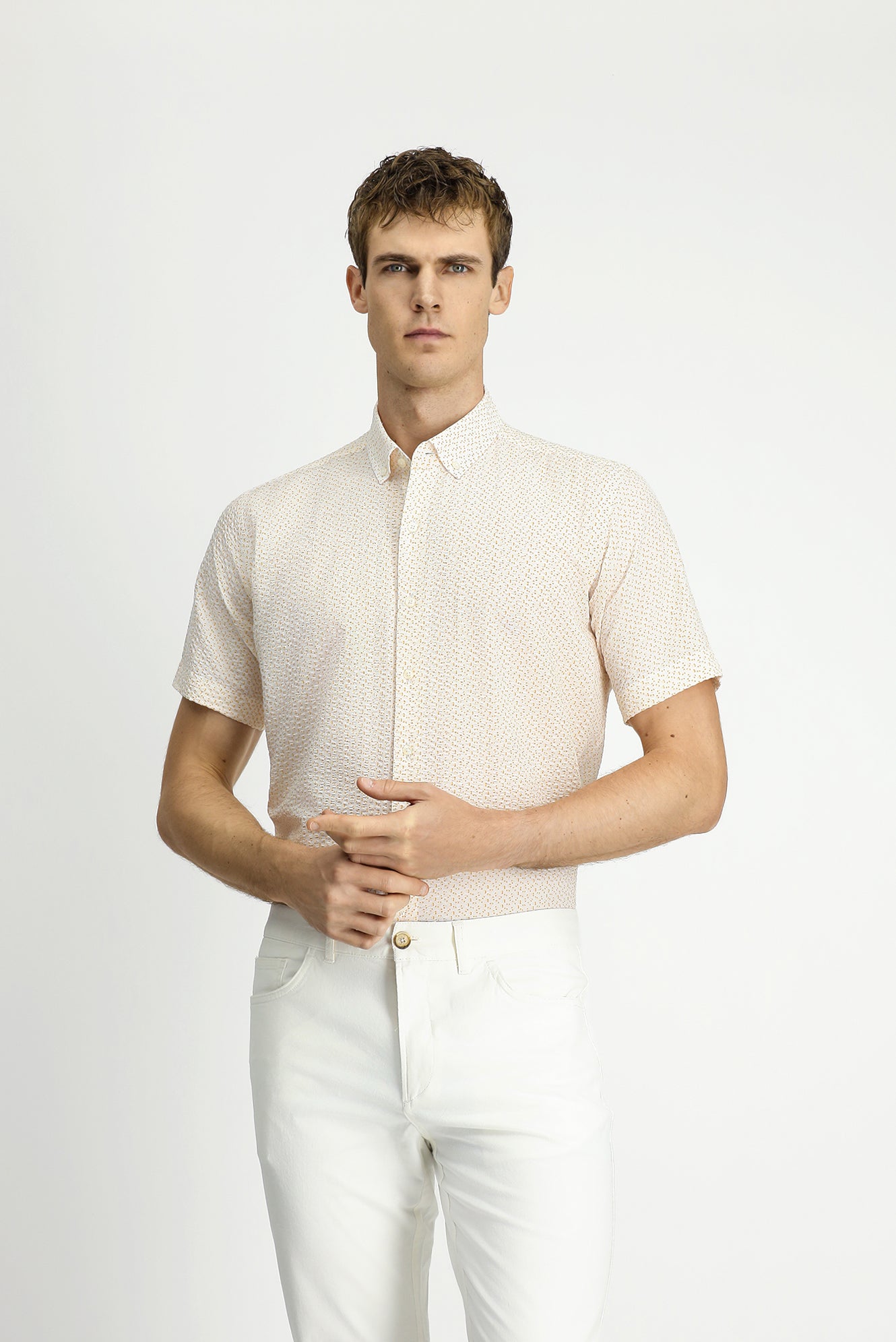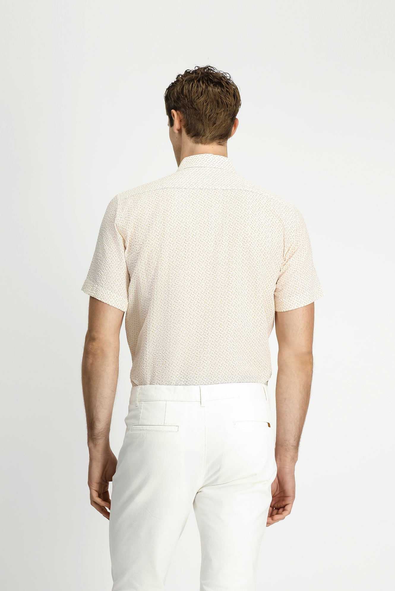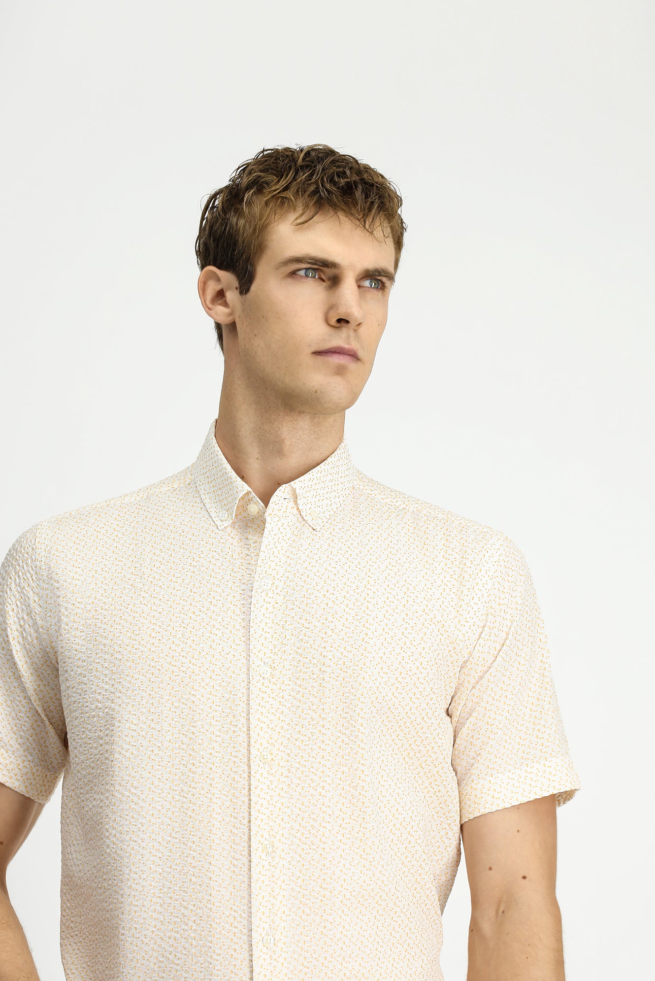 Koyu Sarı Kısa Kol Regular Fit Cepli Düğmeli Yaka Desenli Pamuk Gömlek