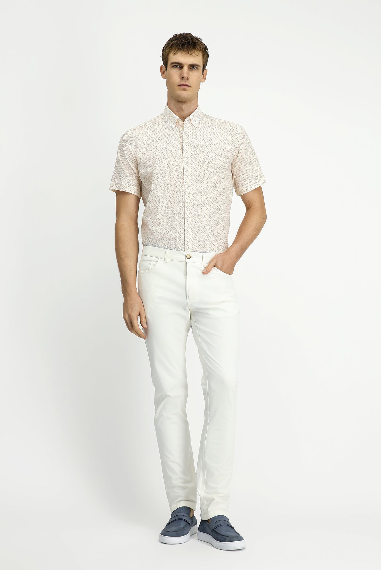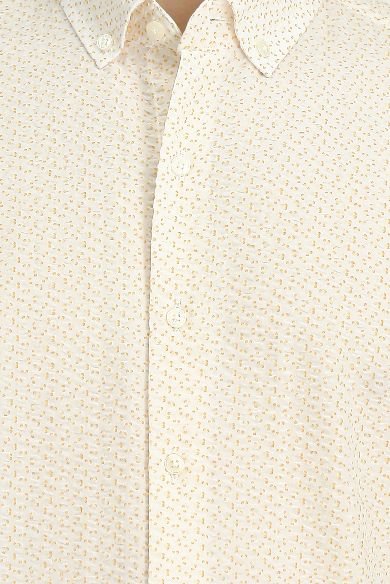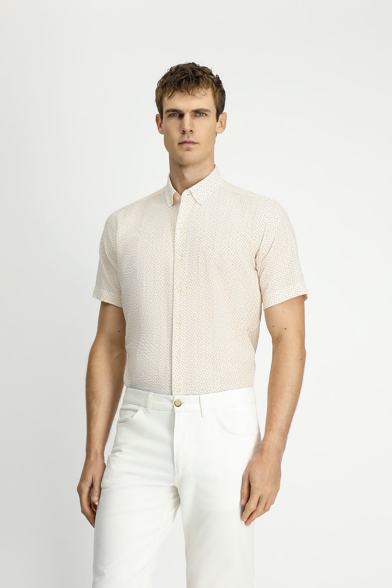 Koyu Sarı Kısa Kol Regular Fit Cepli Düğmeli Yaka Desenli Pamuk Gömlek