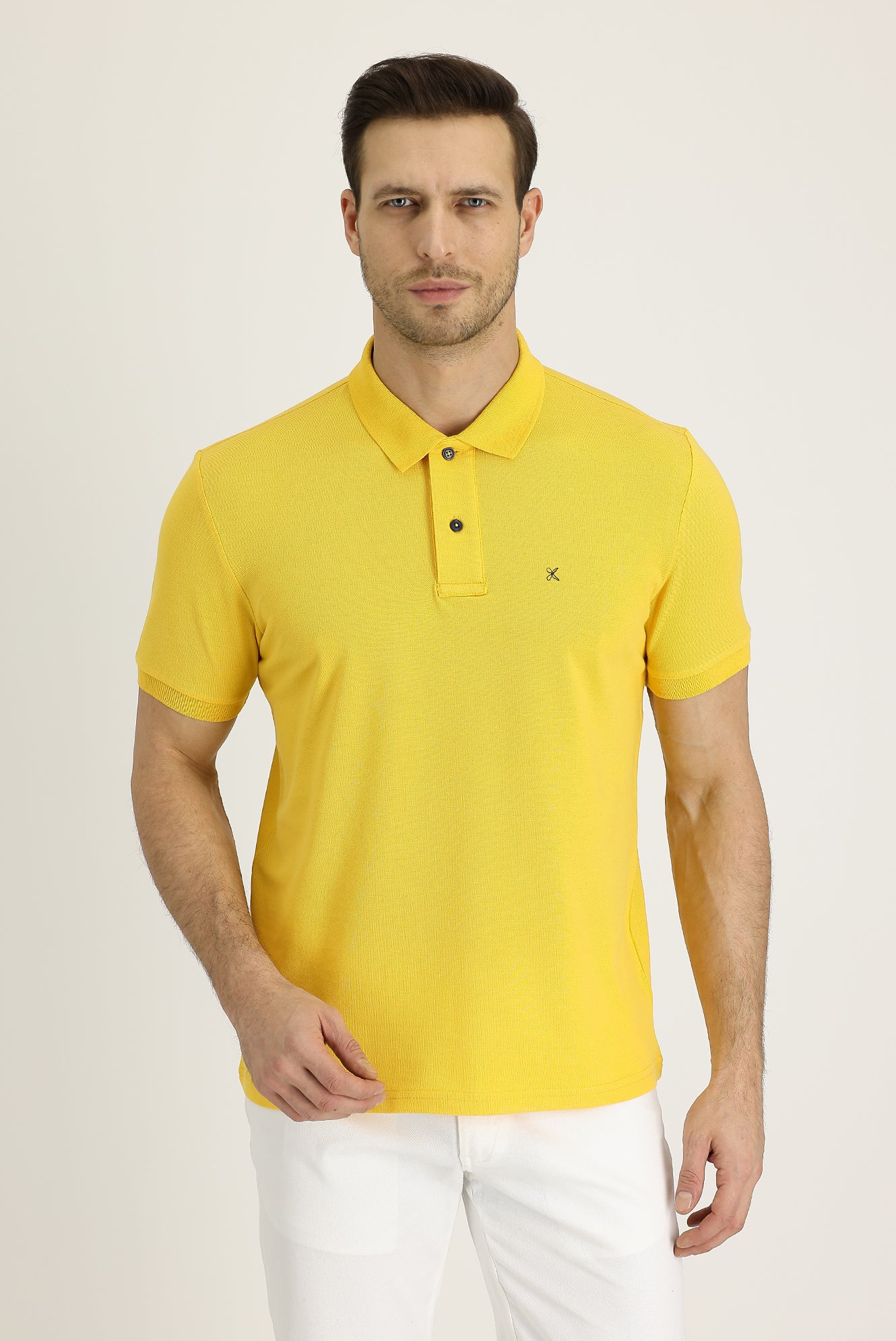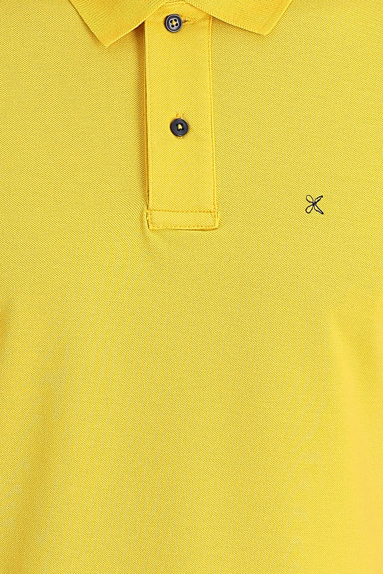Koyu Sarı Polo Yaka Regular Fit Nakışlı Pamuk Tişört