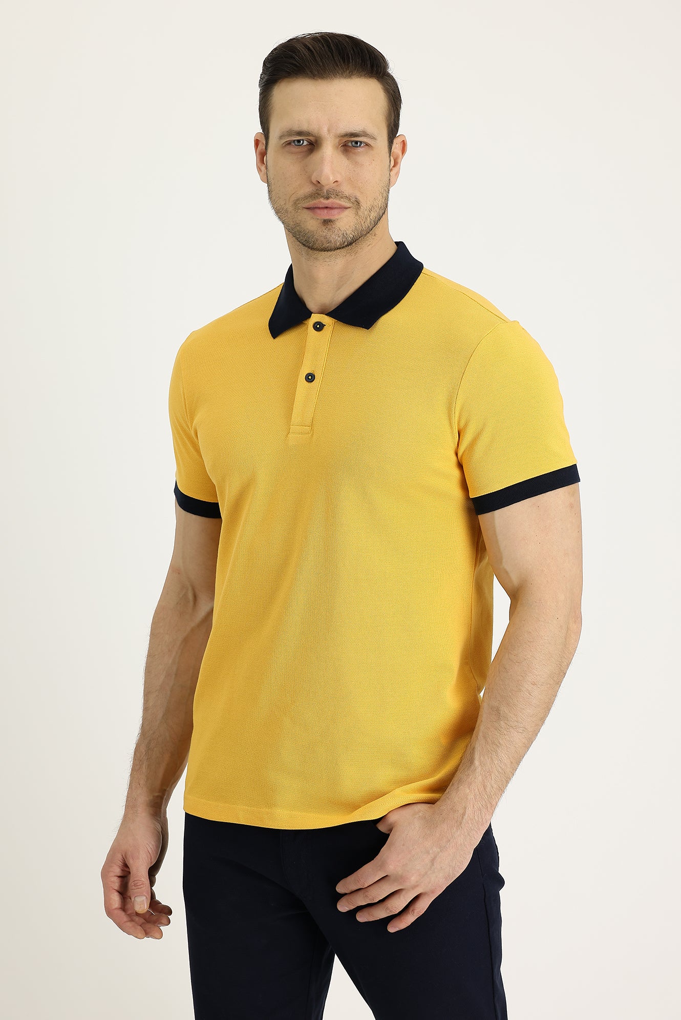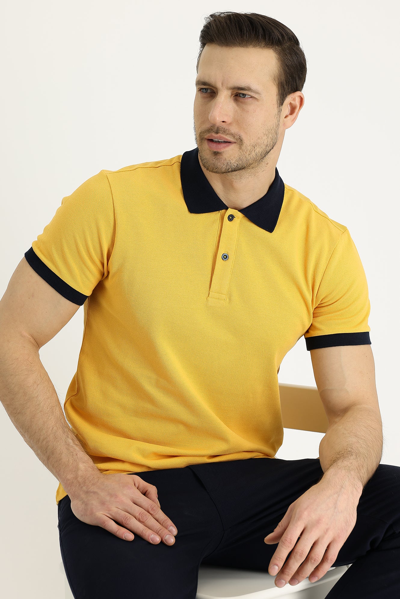 • Koyu Sarı Polo Yaka Slim Fit Dar Kesim Desenli Pamuk Tişört ₺1.250 ve Üzeri Ücretsiz Teslimat