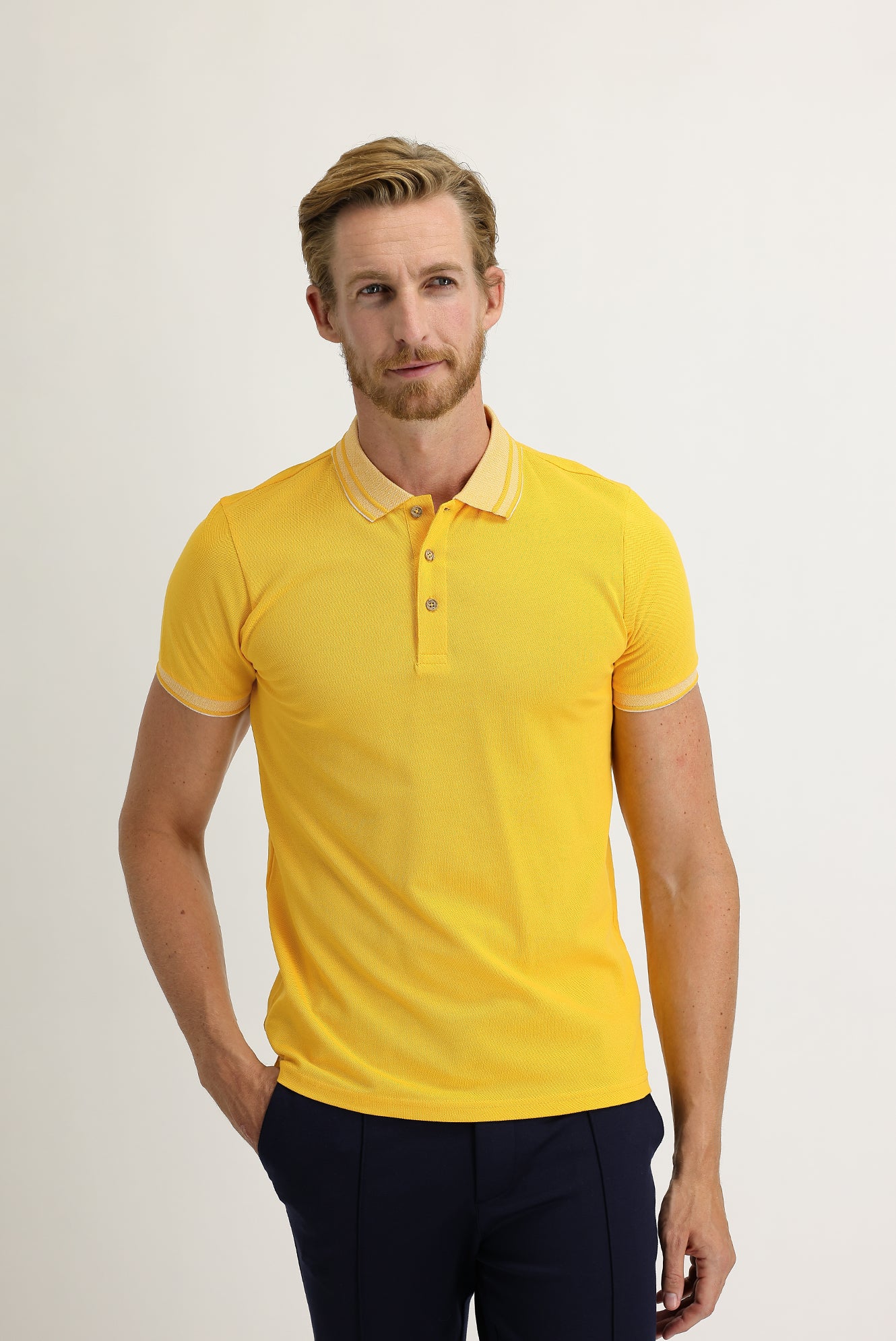 Koyu Sarı Polo Yaka Slim Fit Dar Kesim Pamuk Tişört