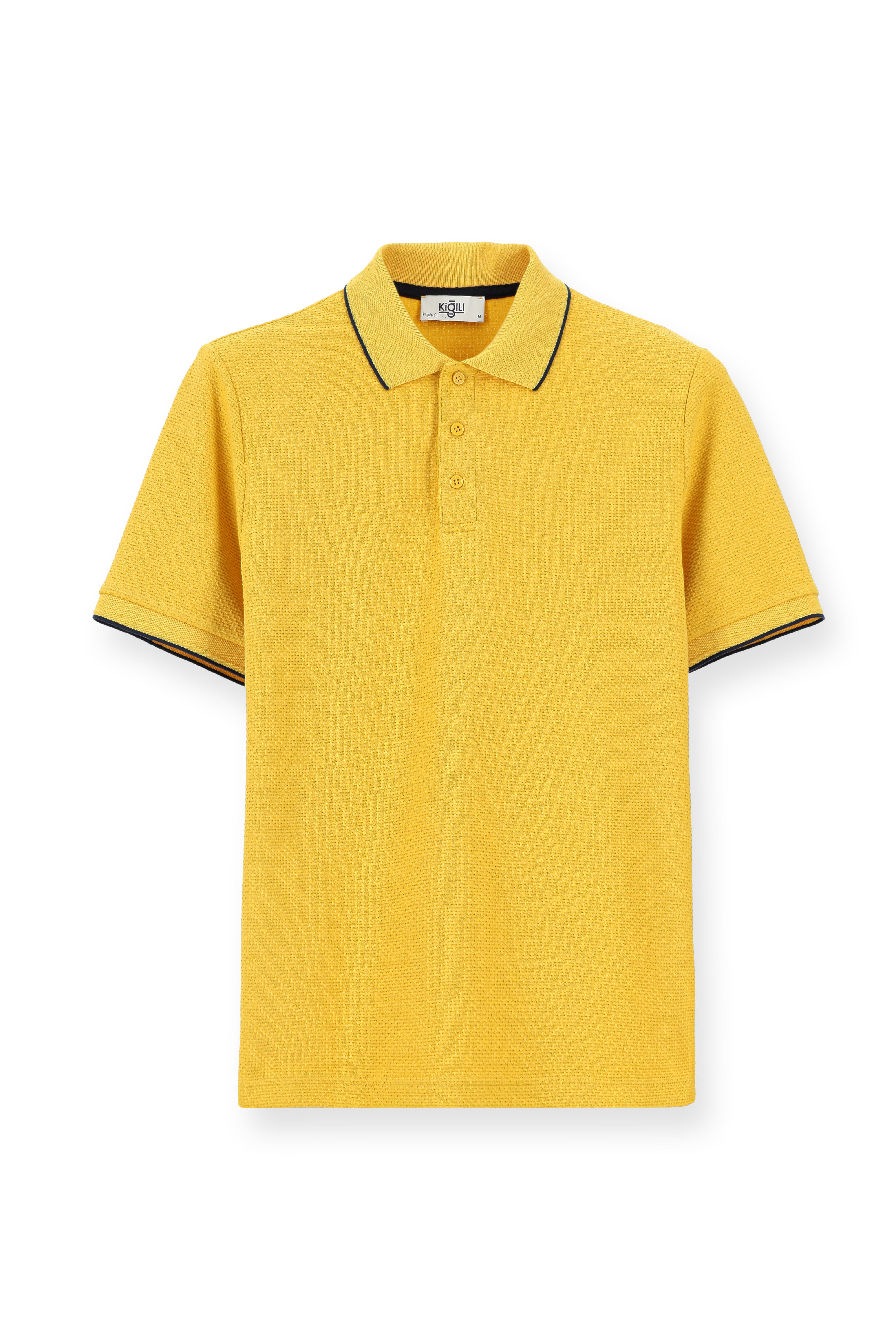 Koyu Sarı Regular Fit Desenli Likralı Polo Yaka Tişört