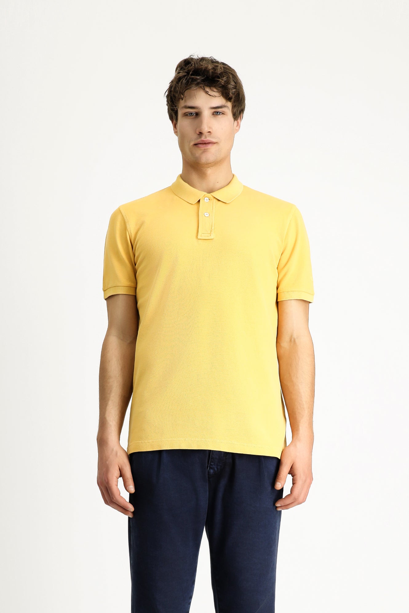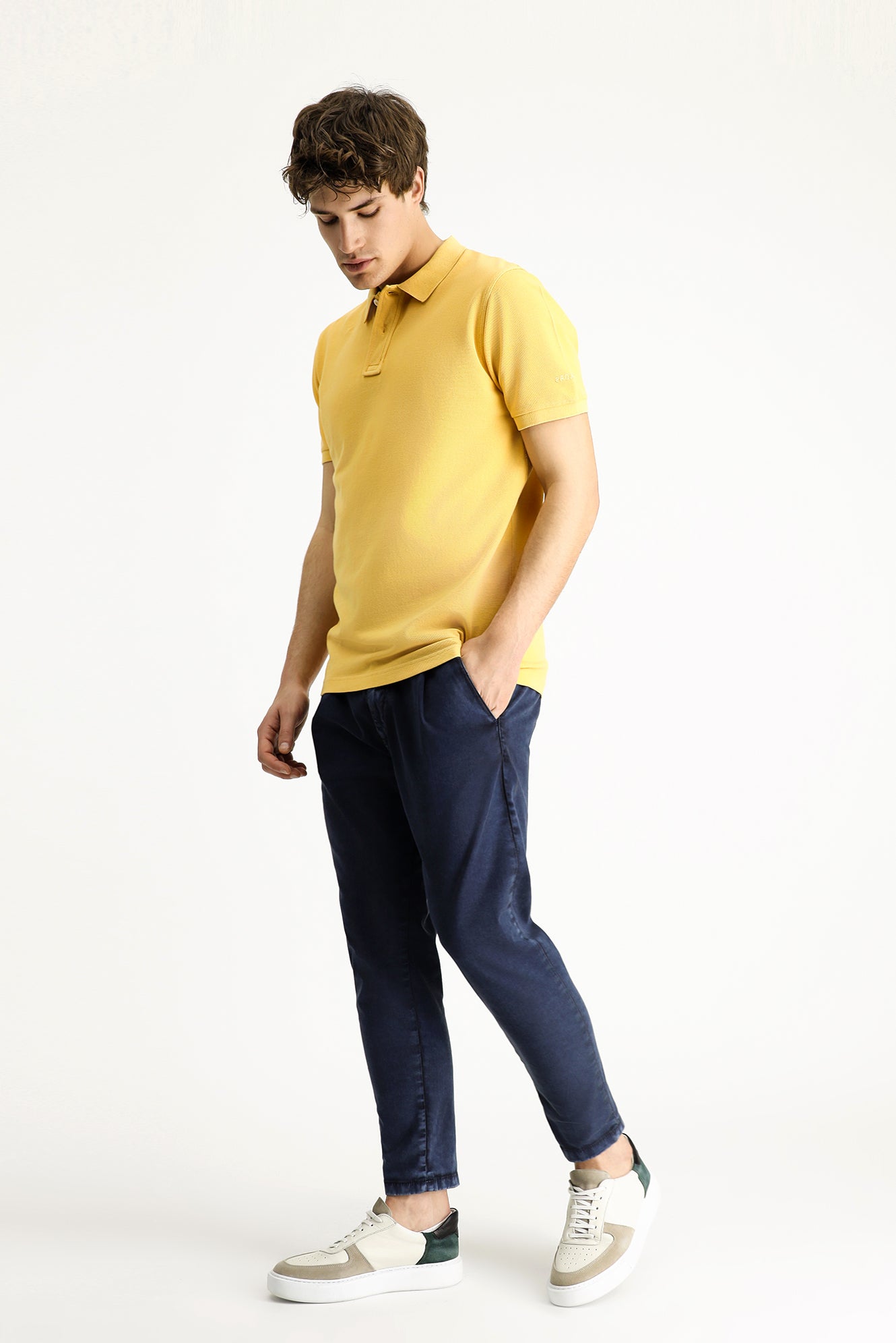 Koyu Sarı Slim Fit Dar Kesim Nakışlı Pamuk Polo Yaka Tişört