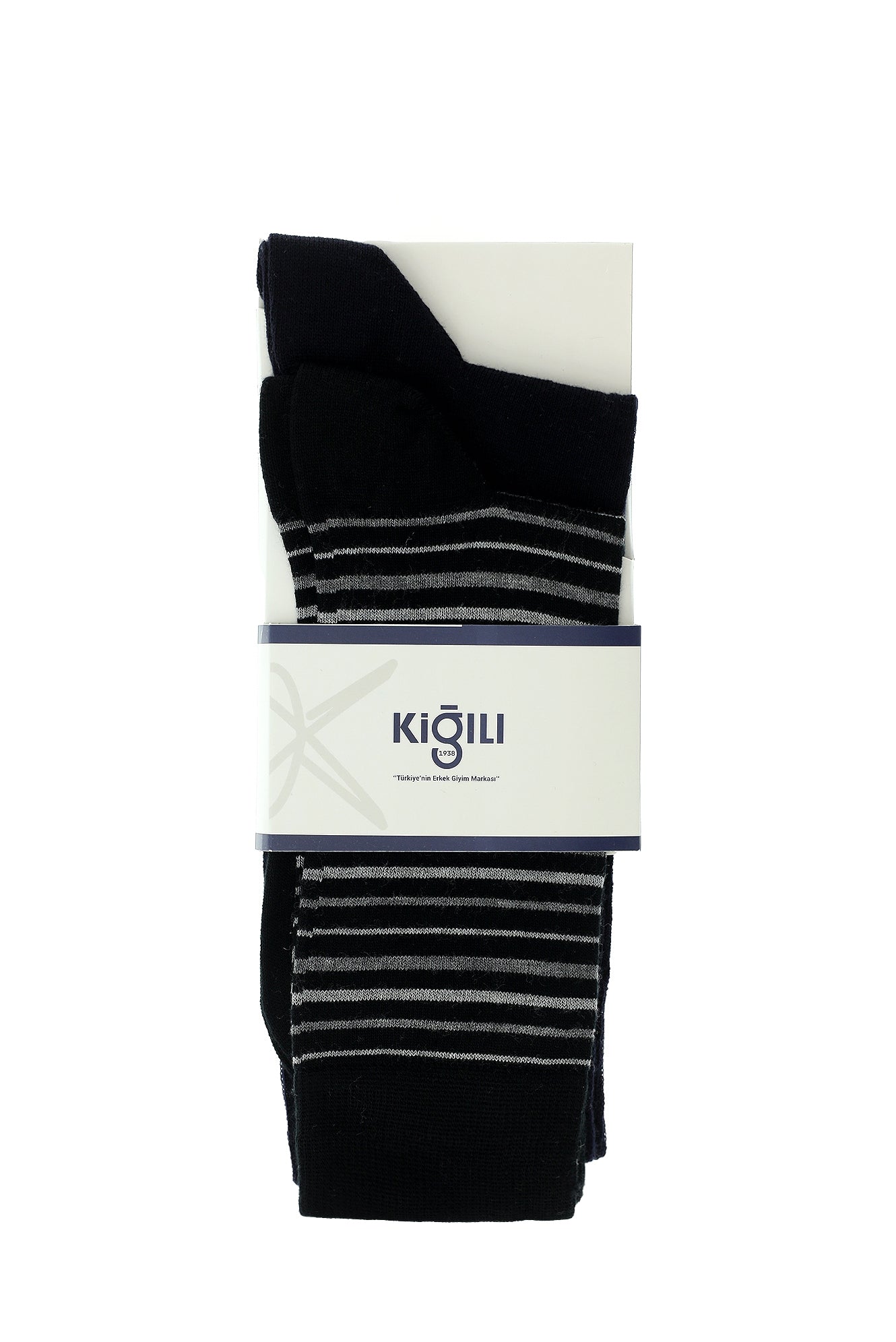 Koyu Siyah 2'li Pamuklu Çizgili Çorap Seti