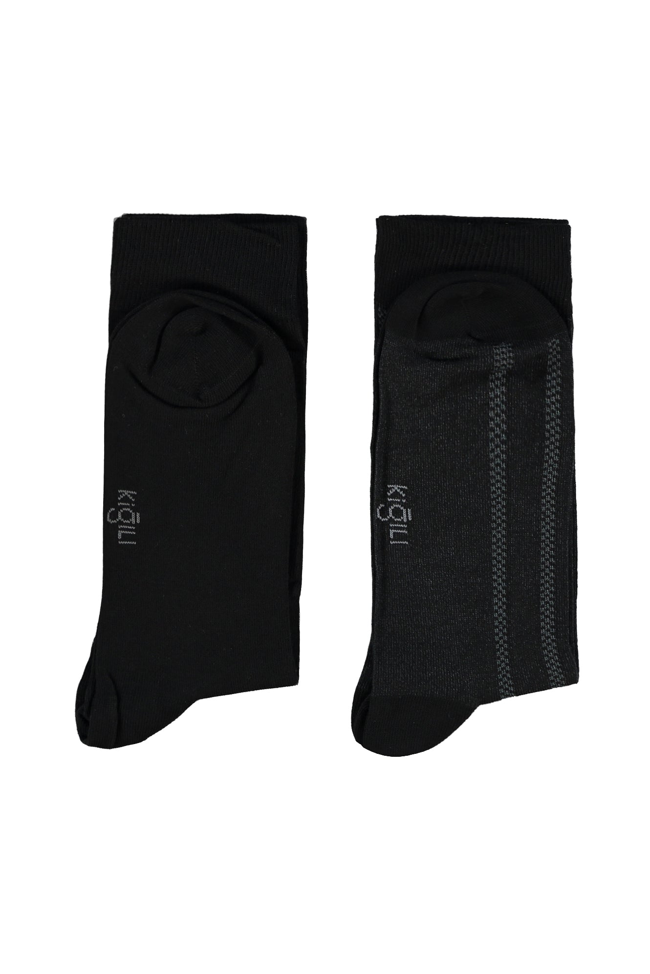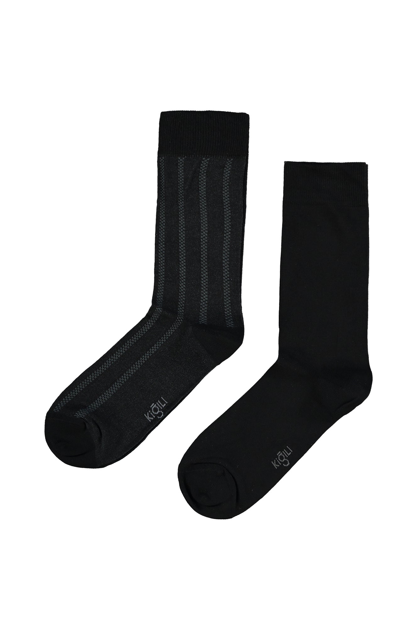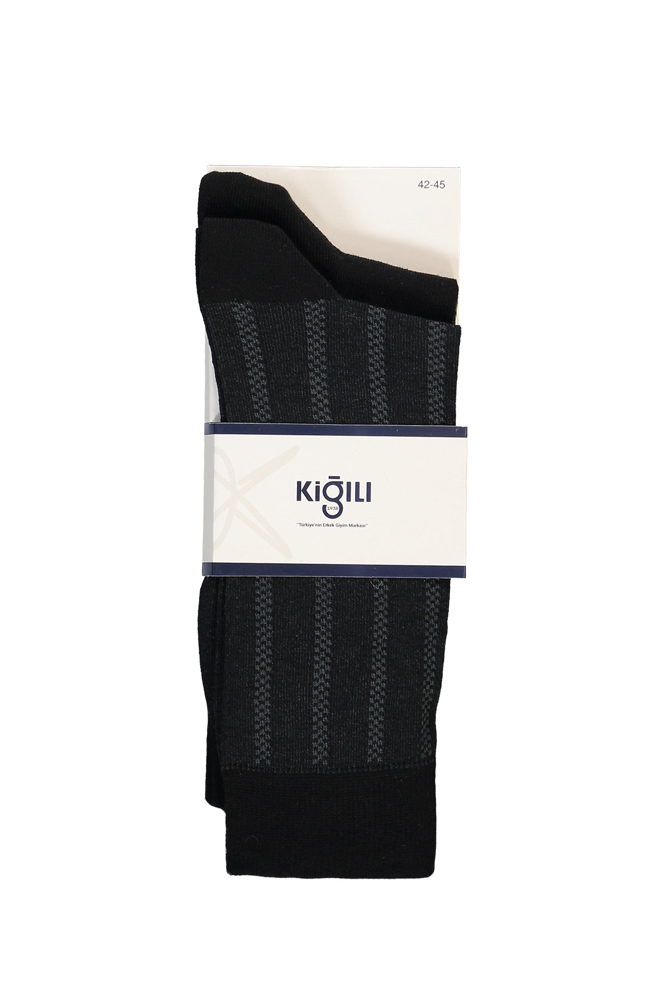 Koyu Siyah 2'li Pamuklu Çizgili Likralı Esnek Çorap Seti