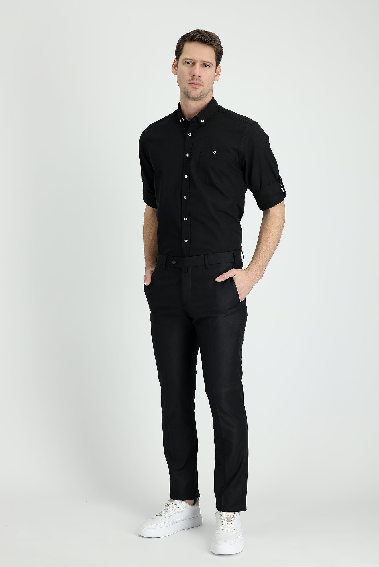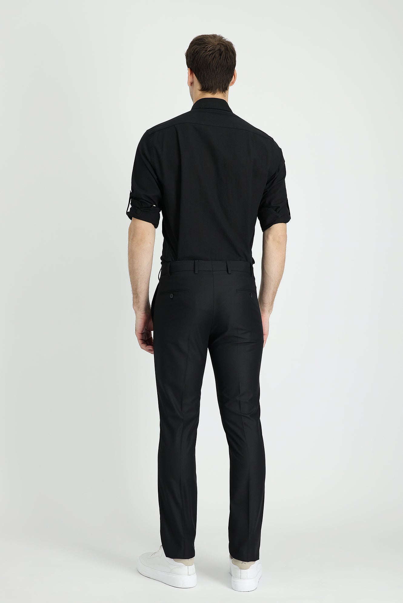 Koyu Siyah 4 Drop Relaxed Fit Rahat Kesim Klasik Kumaş Pantolon