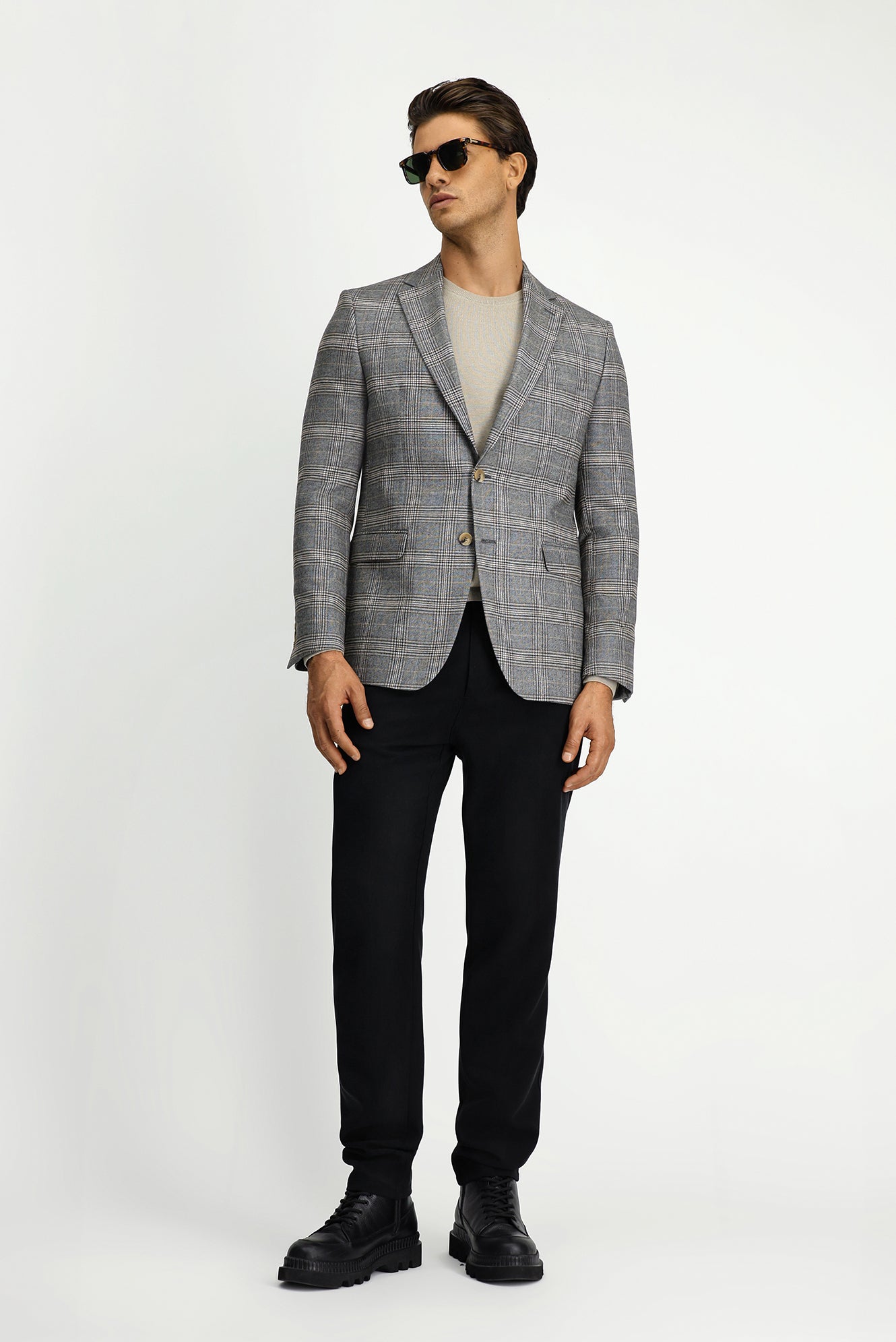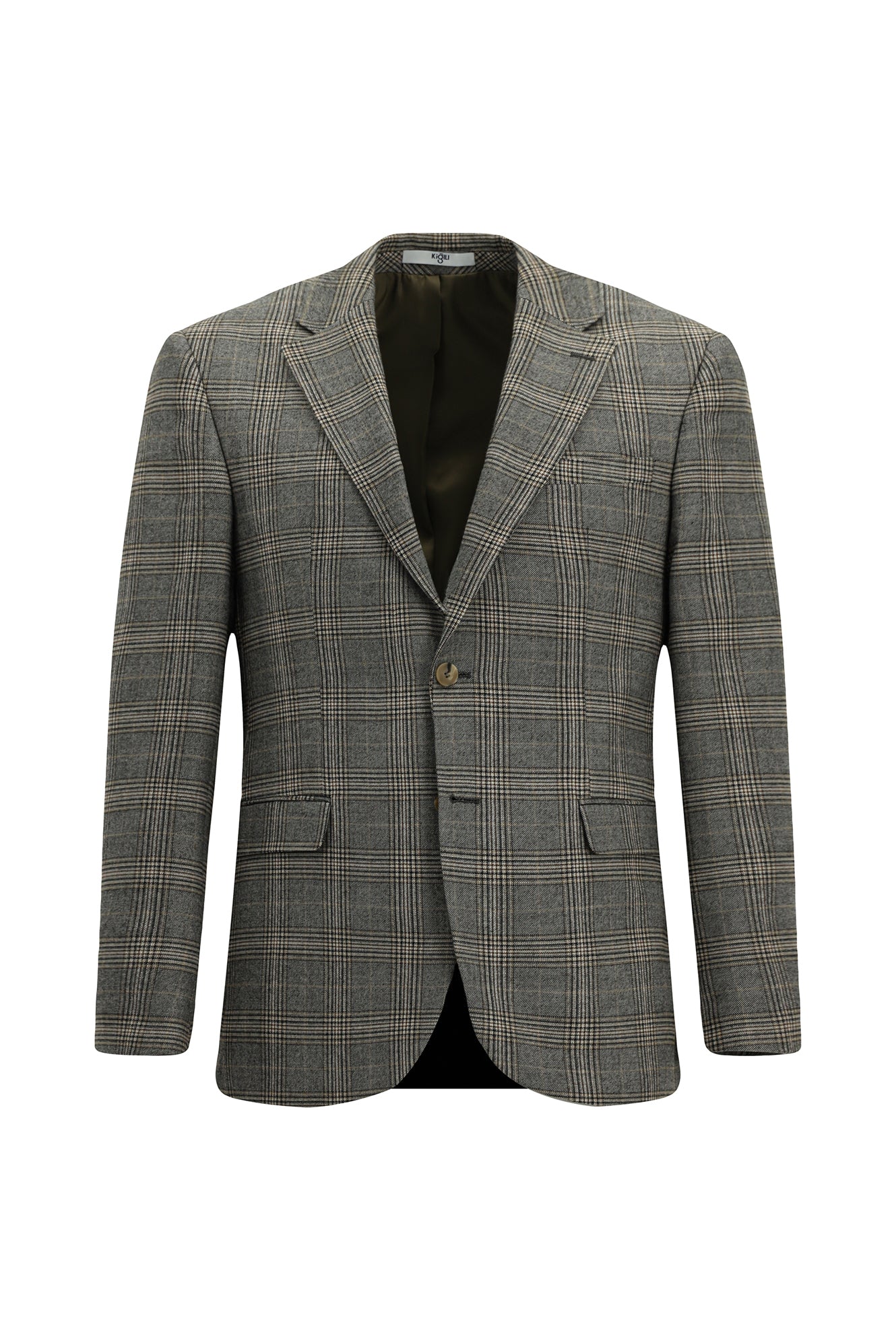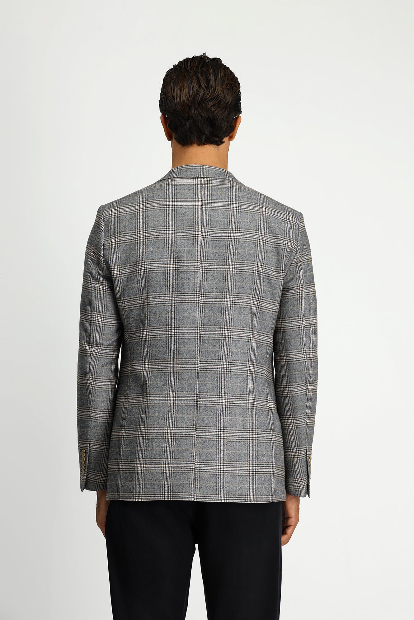 Koyu Vizon Muscle Fit Klasik Ekose Ceket