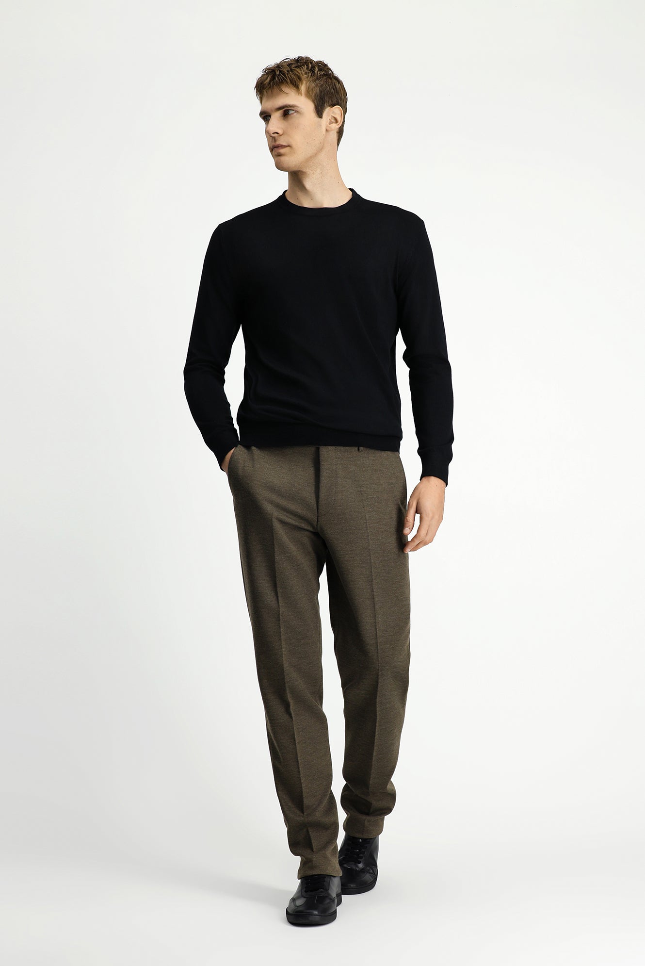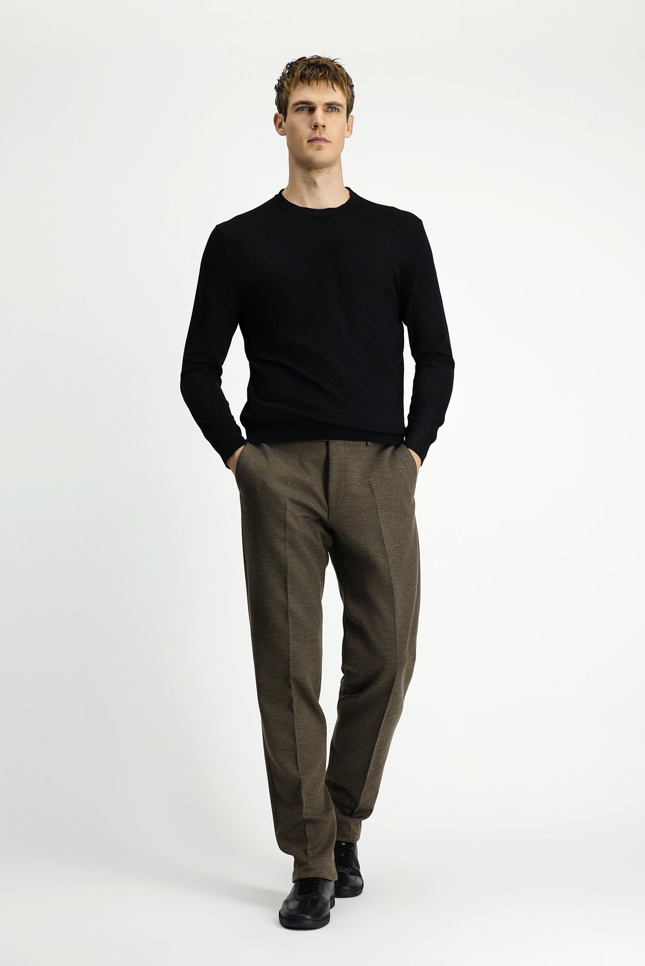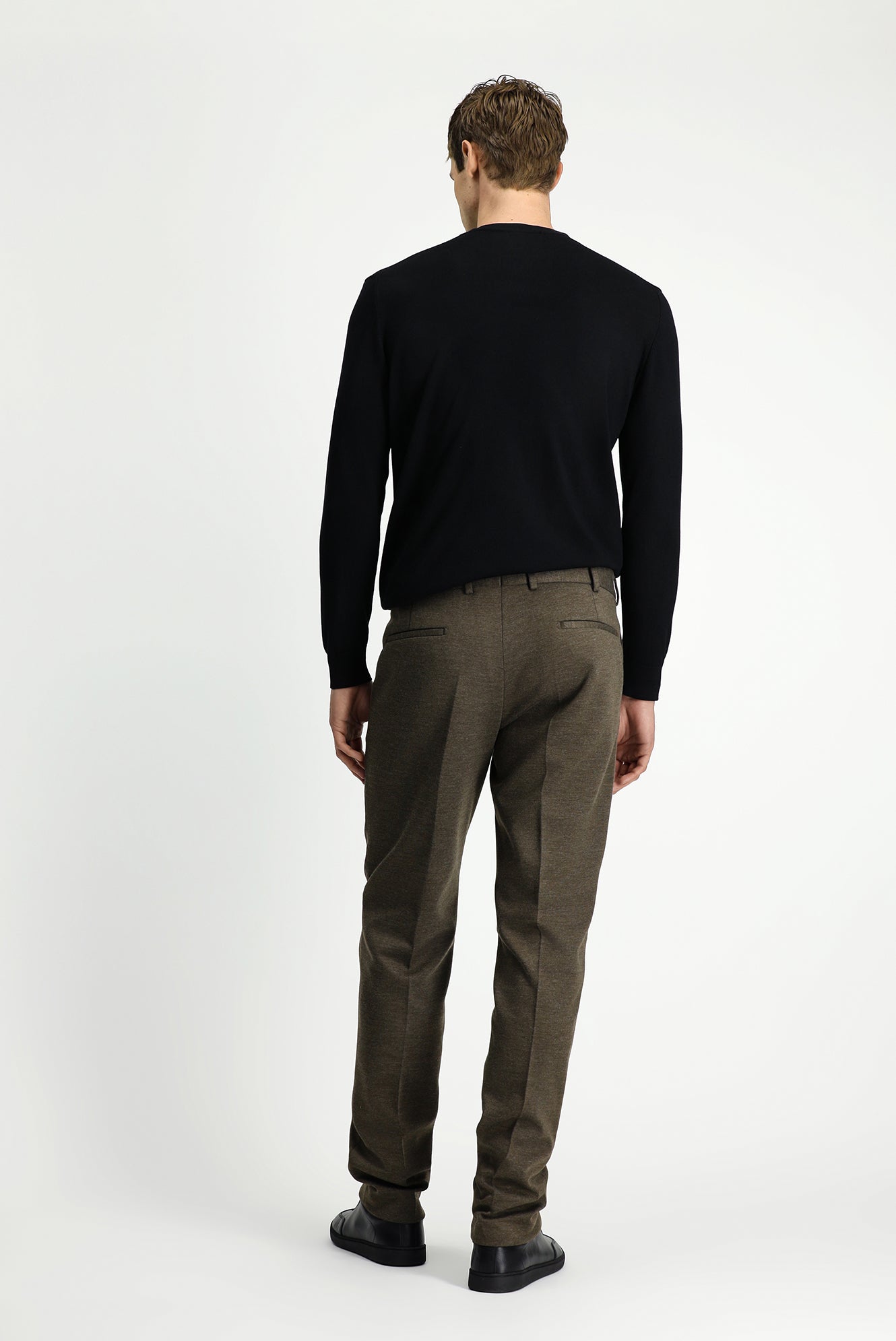 Koyu Vizon Regular Fit Desenli Likralı Klasik Kumaş Pantolon