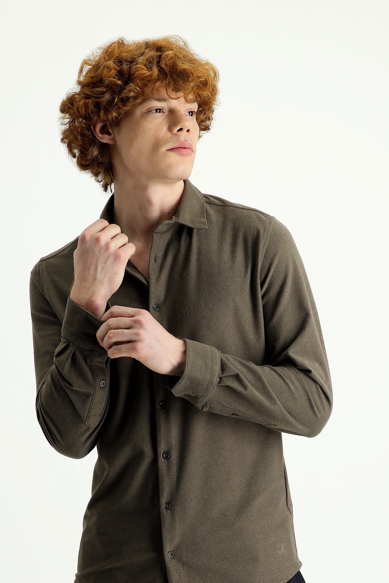 Koyu Vizon Techno-Line Uzun Kol Slim Fit Dar Kesim Spor Örme Gömlek