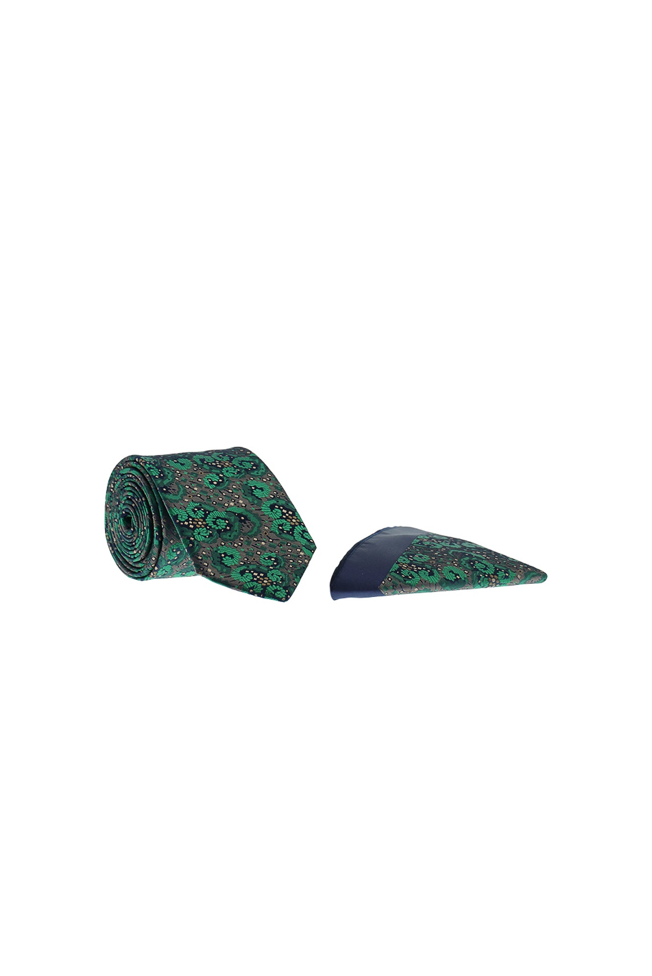 Koyu Yeşil 2'li Desenli Kravat & Mendil Seti