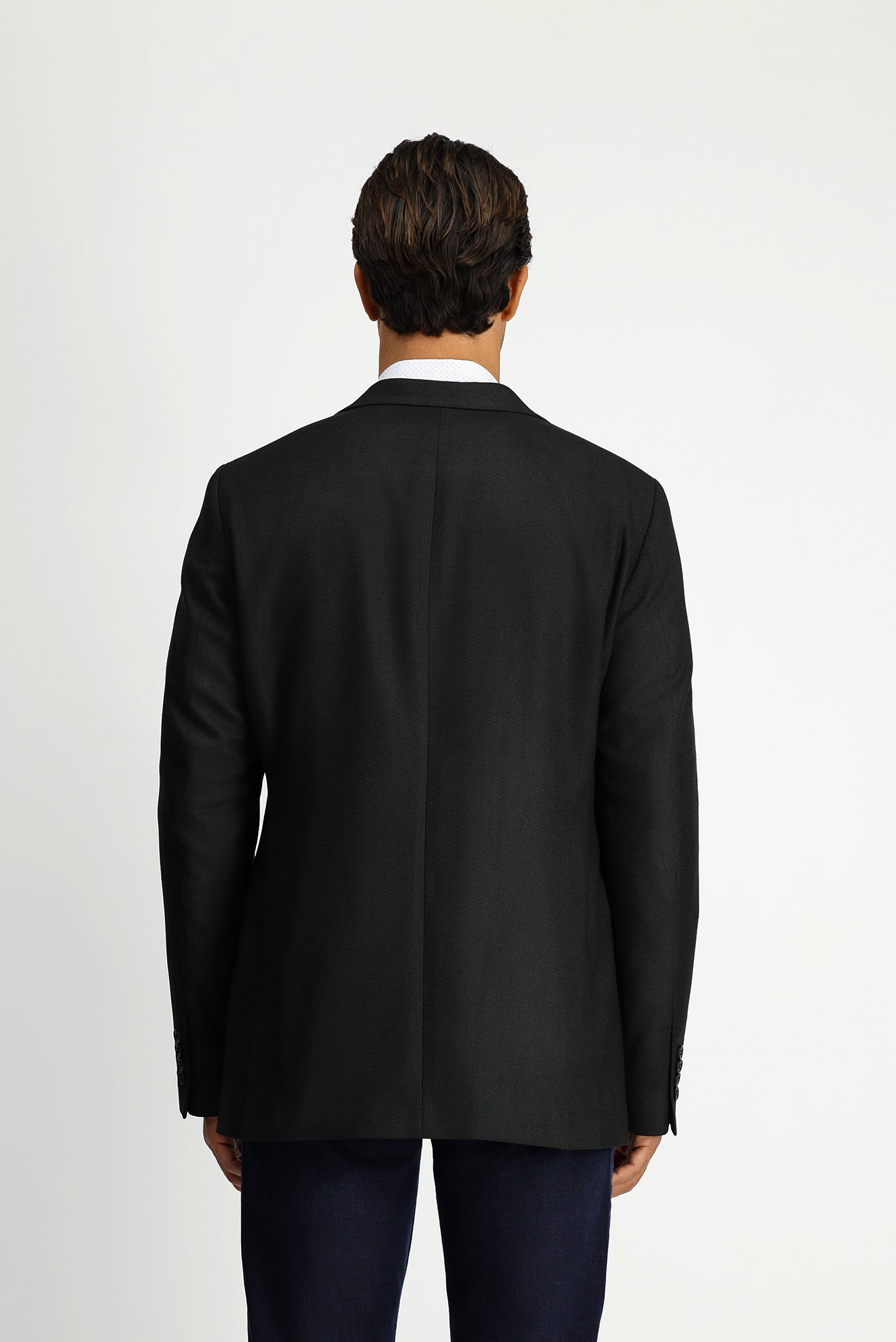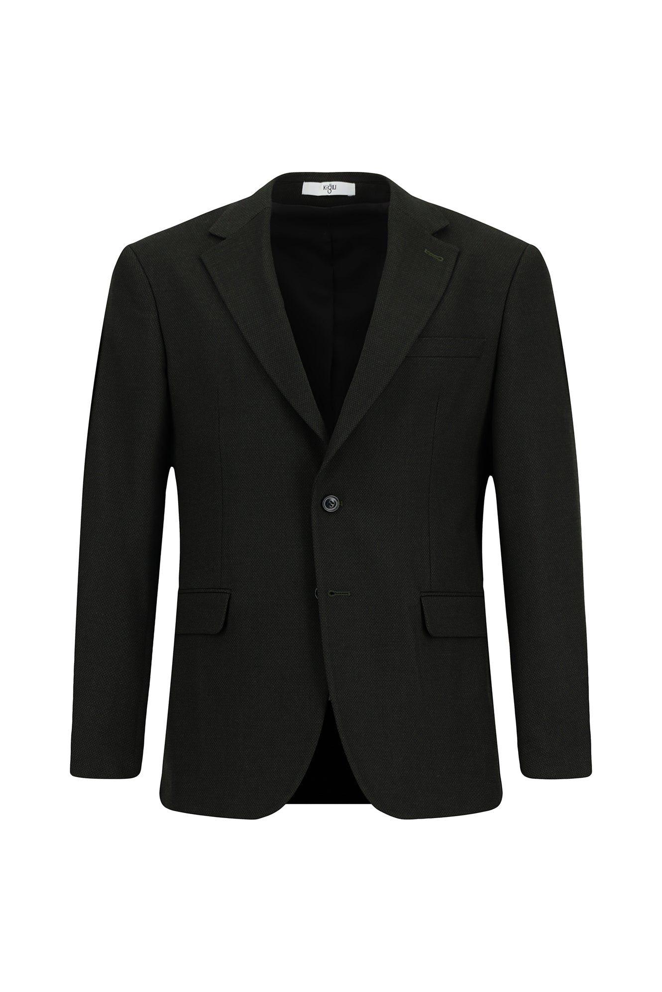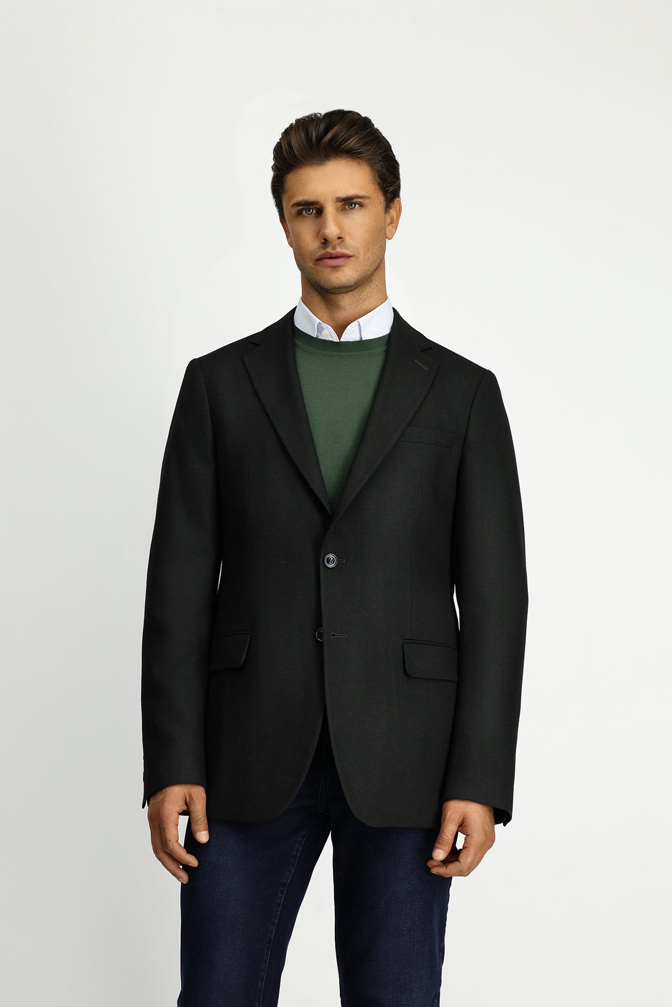 Koyu Yeşil Muscle Fit Likralı Klasik Desenli Ceket