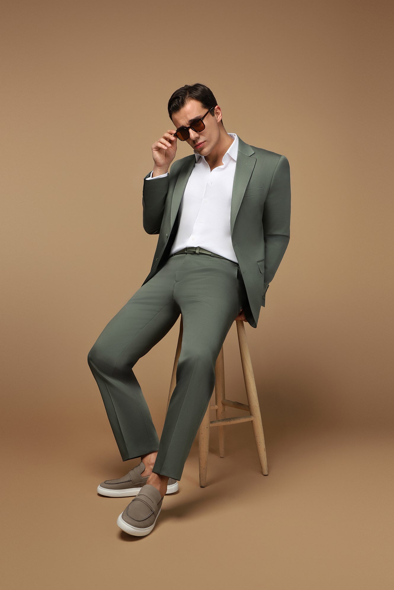 Koyu Yeşil 4 Drop Relaxed Fit Rahat Kesim Pamuklu Lyocell Klasik Takım Elbise