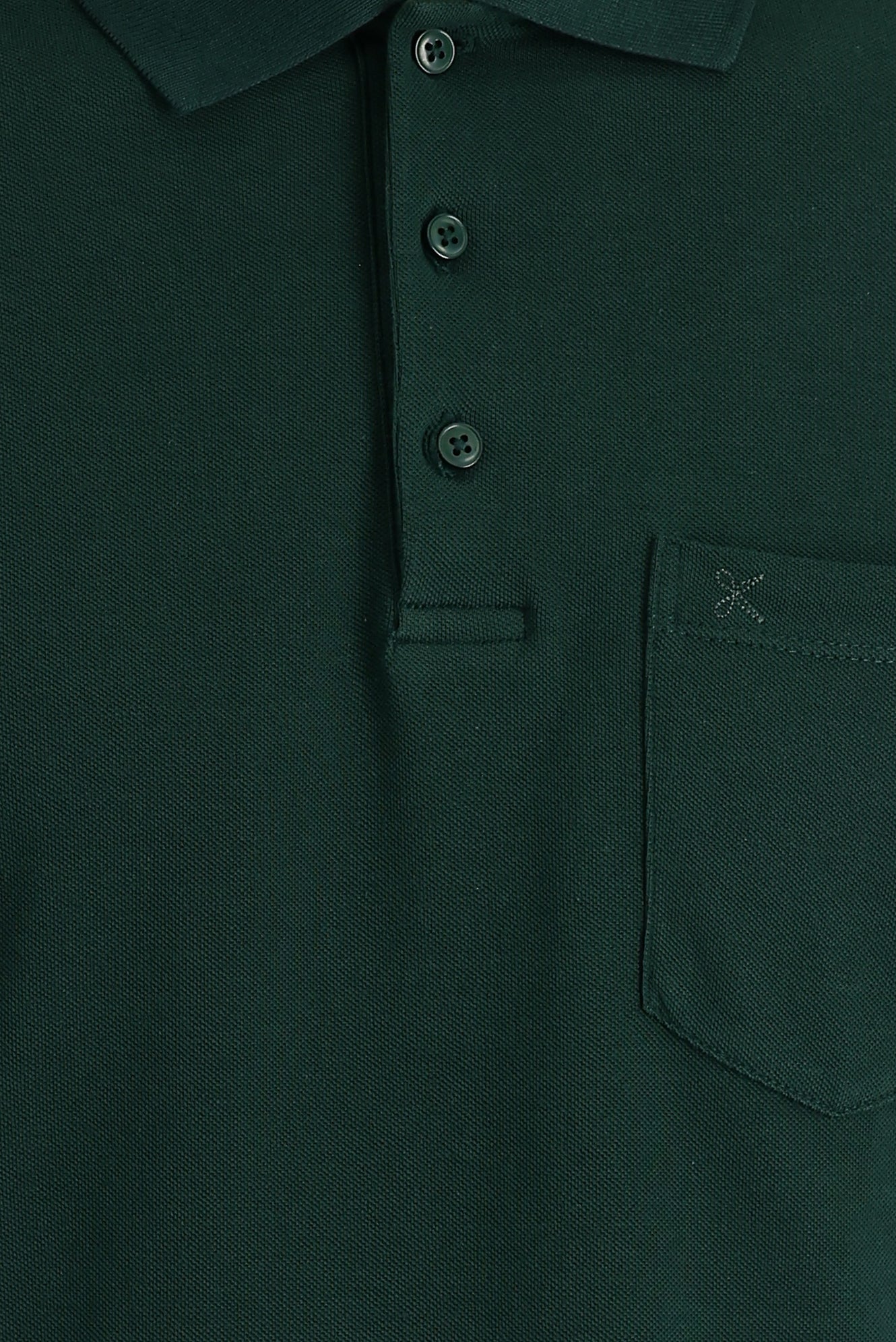 Koyu Yeşil Polo Yaka Regular Fit Nakışlı Pamuk Tişört