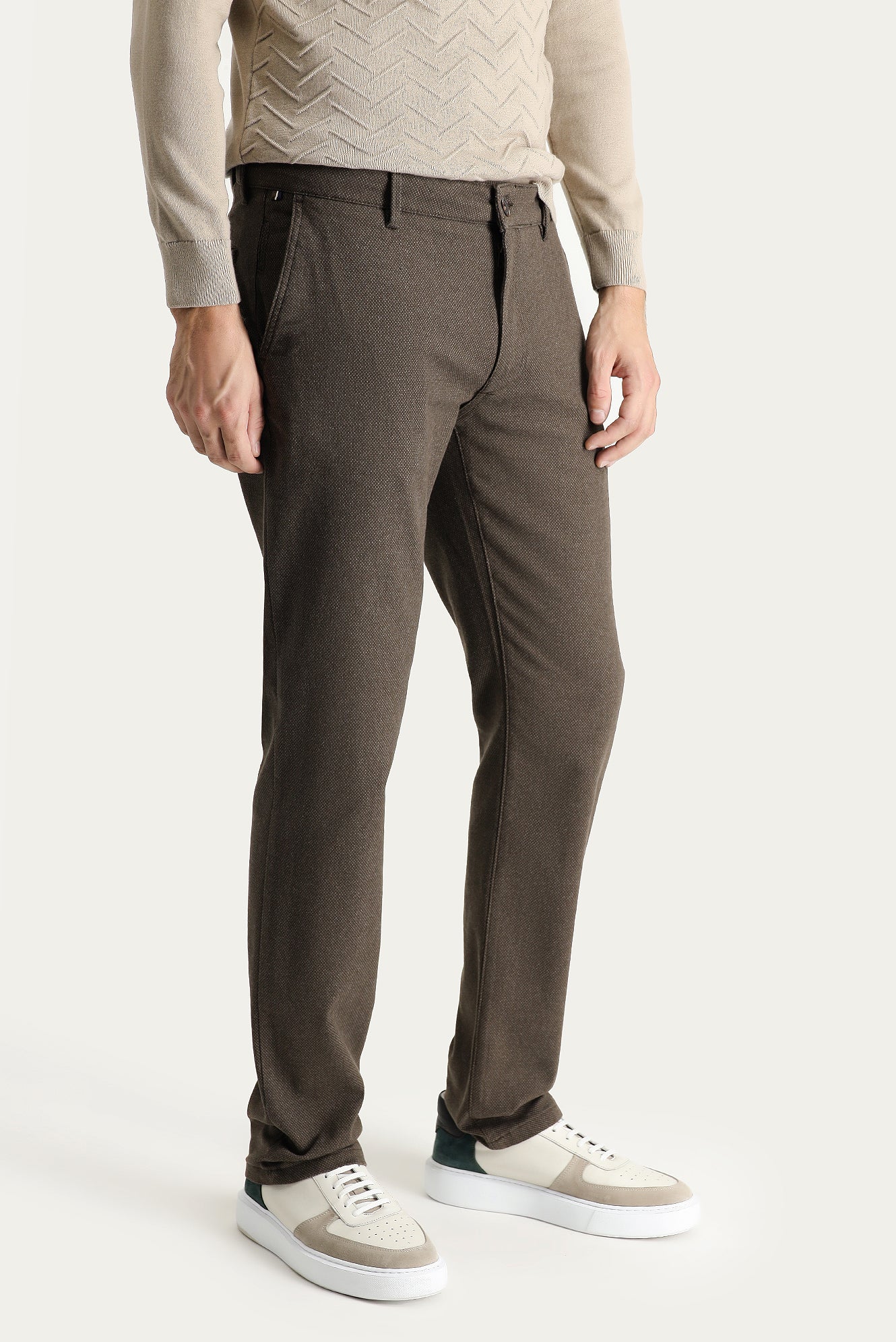 Koyu Yeşil Regular Fit Desenli Likralı Kanvas / Chino Pantolon