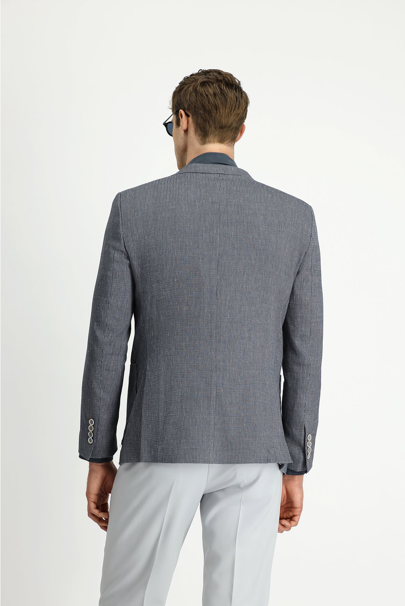 Koyu Yeşil 6 Drop Regular Fit Standart Kesim Keten Karışımlı Çizgili Spor Ceket