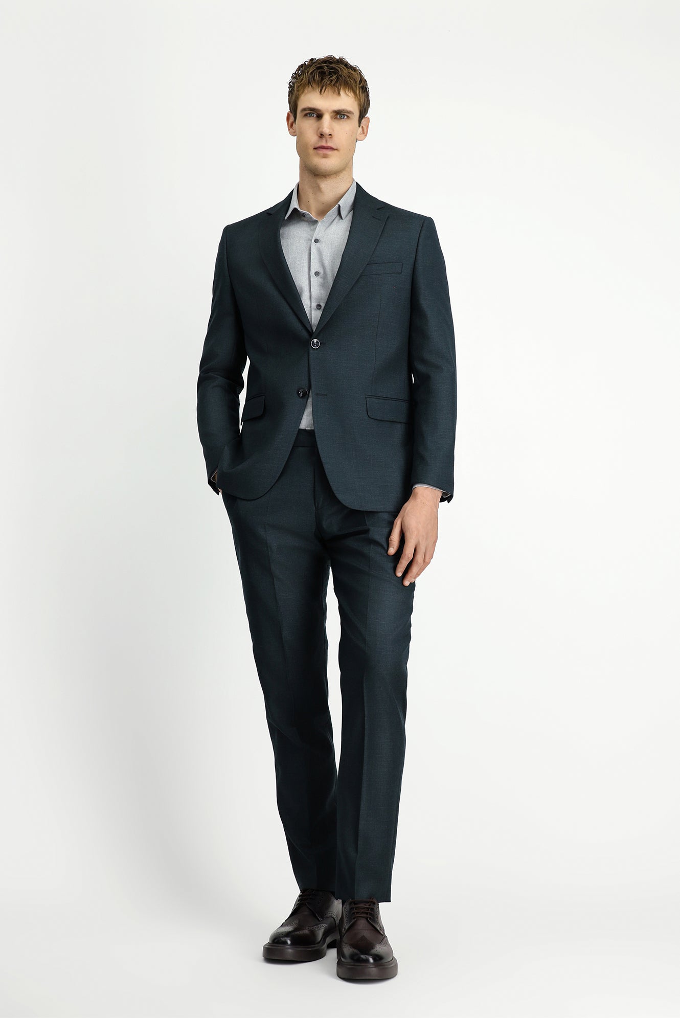 Koyu Yeşil 4 Drop Relaxed Fit Rahat Kesim Klasik Desenli Beli Lastikli Takım Elbise