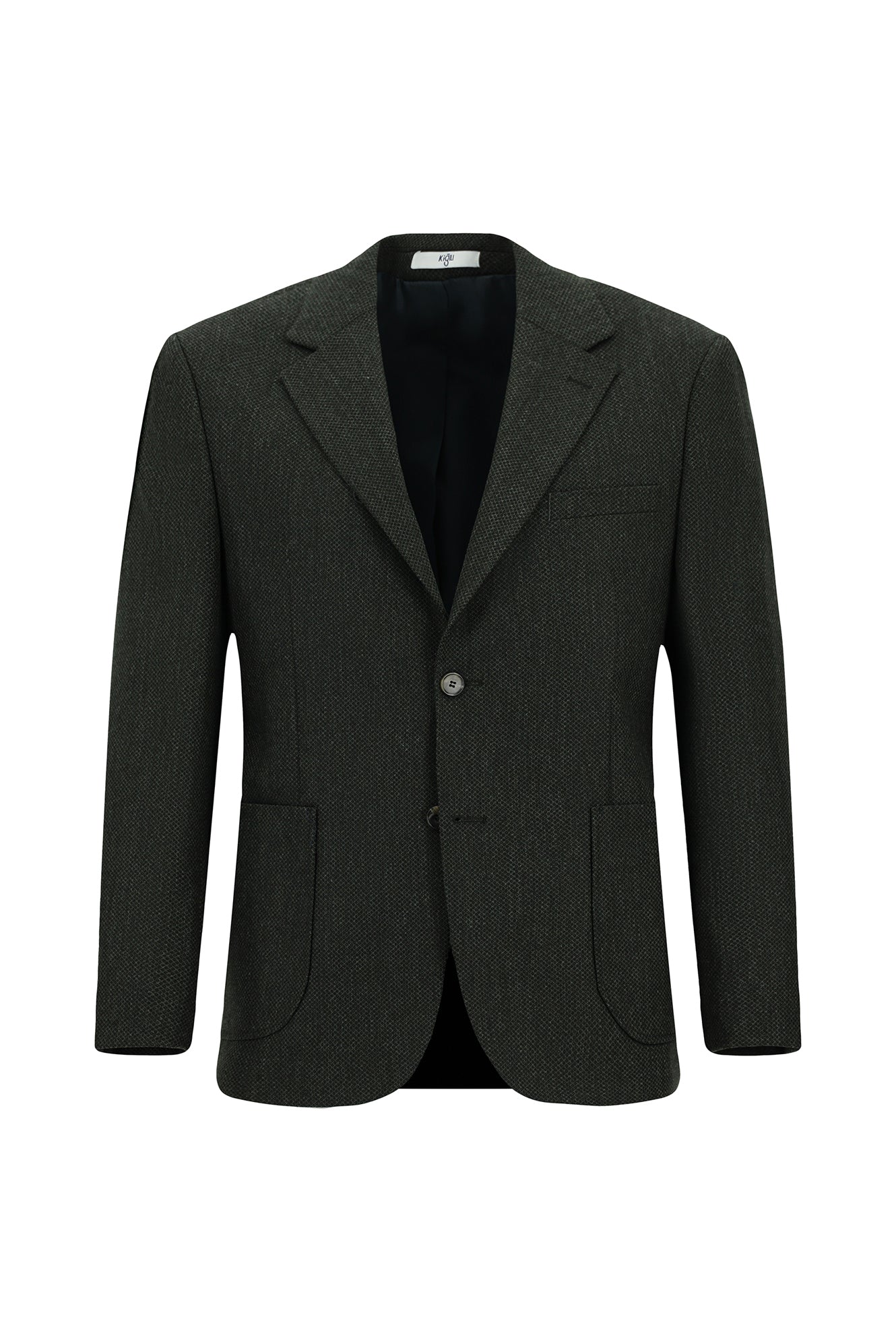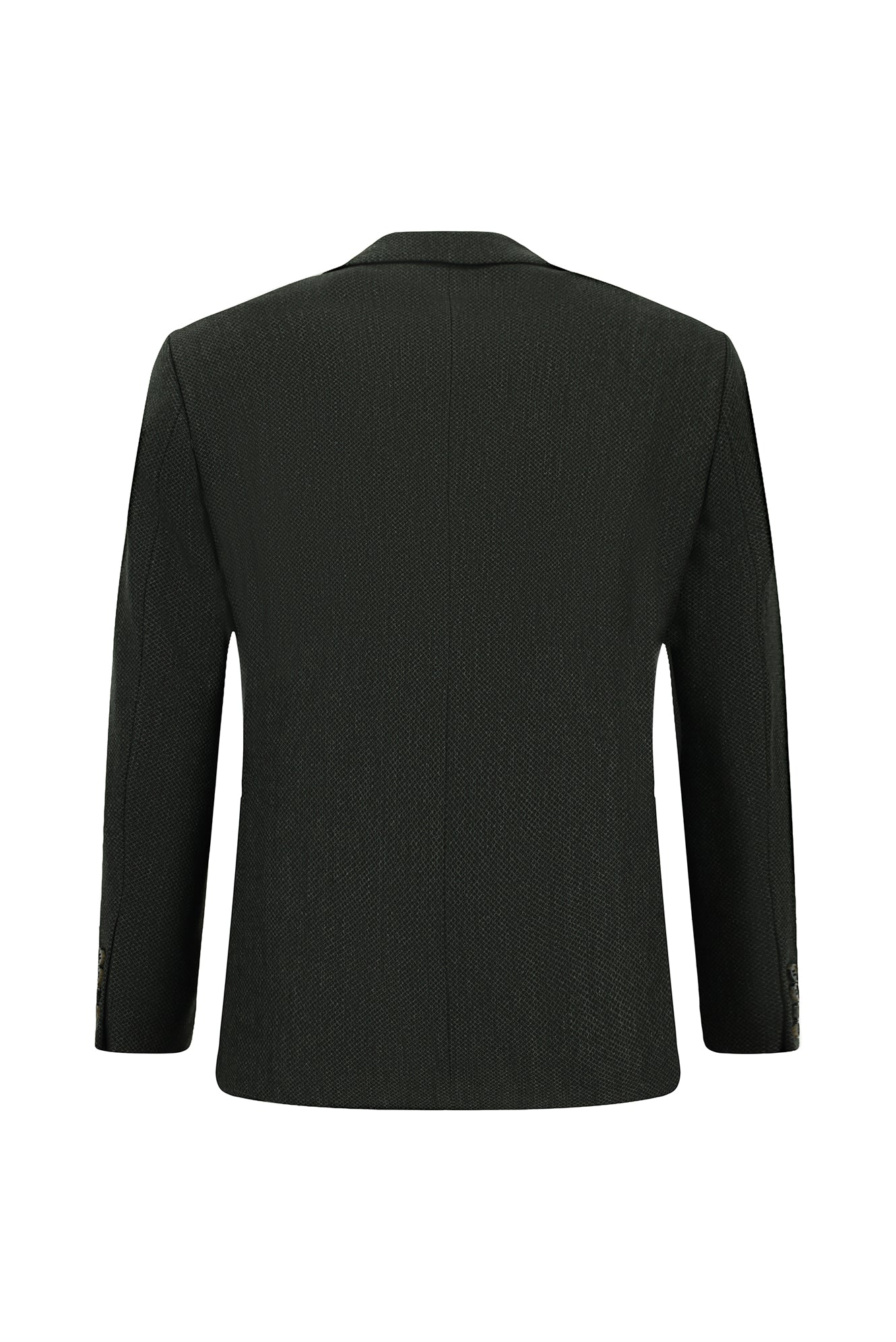 Koyu Yeşil Relaxed Fit Rahat Kesim Desenli Yünlü Ceket