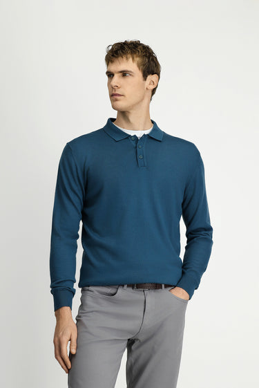 Koyu Yeşil Polo Yaka Düğmeli Regular Fit Sıcak Tutan Yünlü Triko Kazak