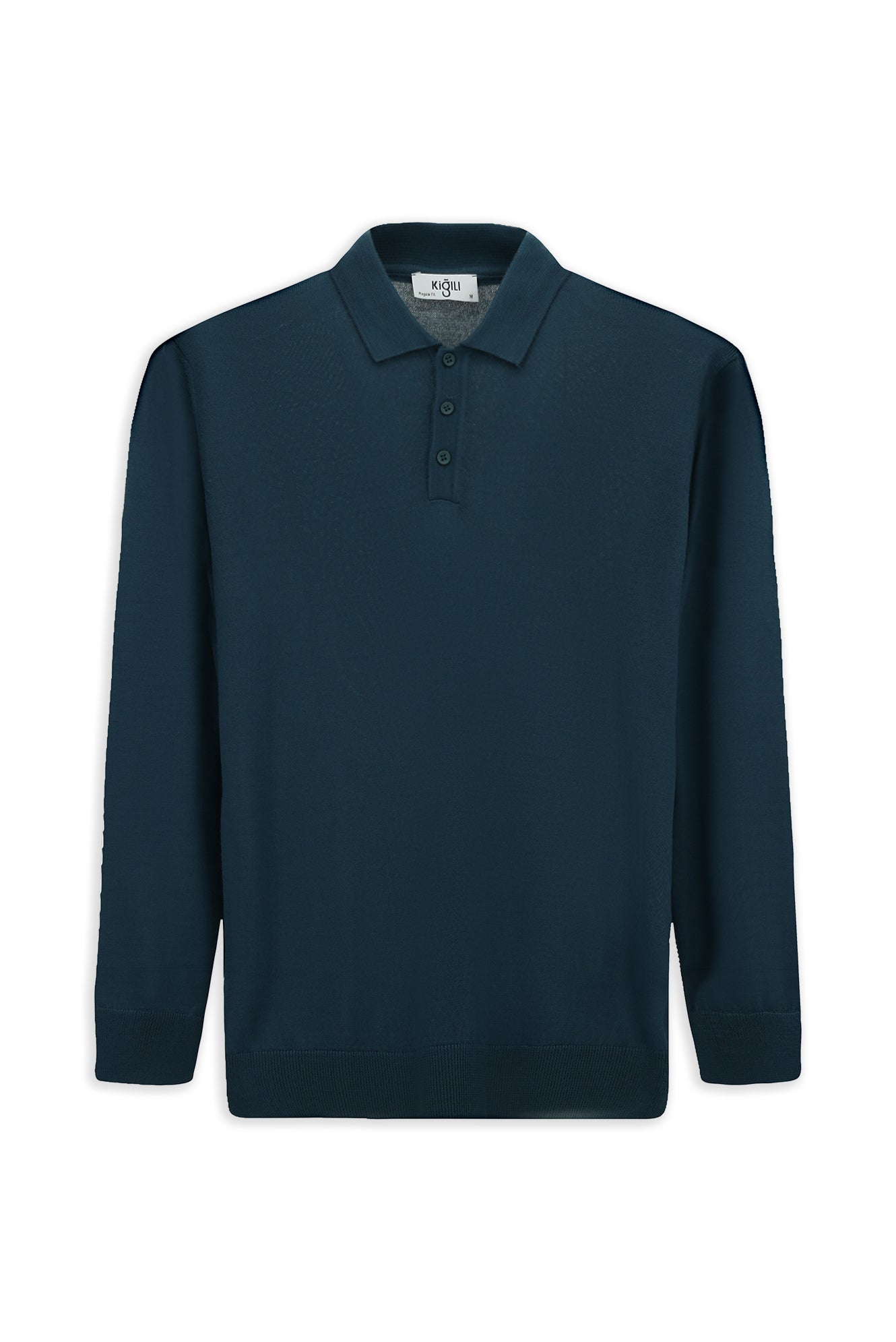 Koyu Yeşil Polo Yaka Regular Fit Yünlü Örme Triko Kazak
