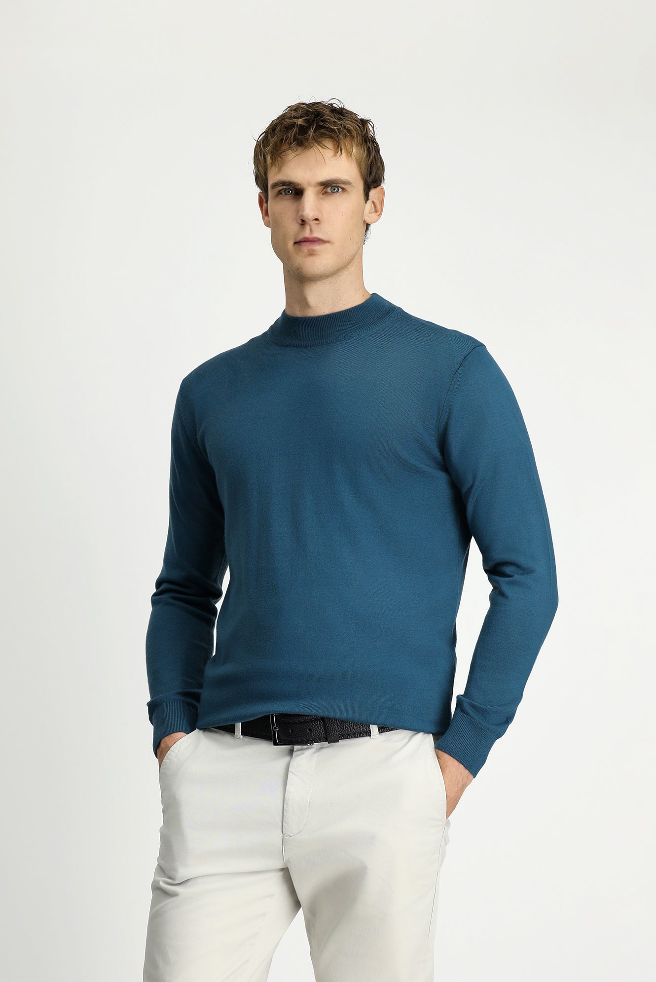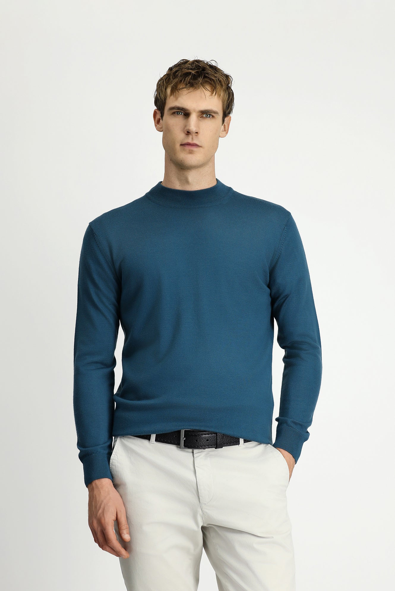 Koyu Yeşil Yarım Balıkçı Yaka Regular Fit Yünlü Basic Örme Triko Kazak