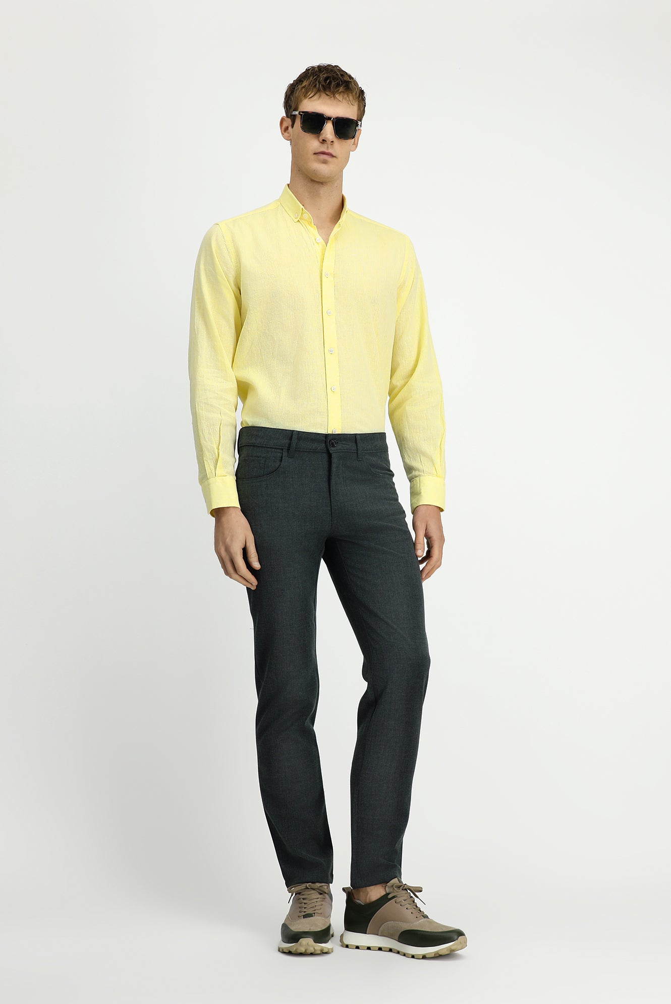 Koyu Yeşil Regular Fit Yünlü Kumaş Pantolon