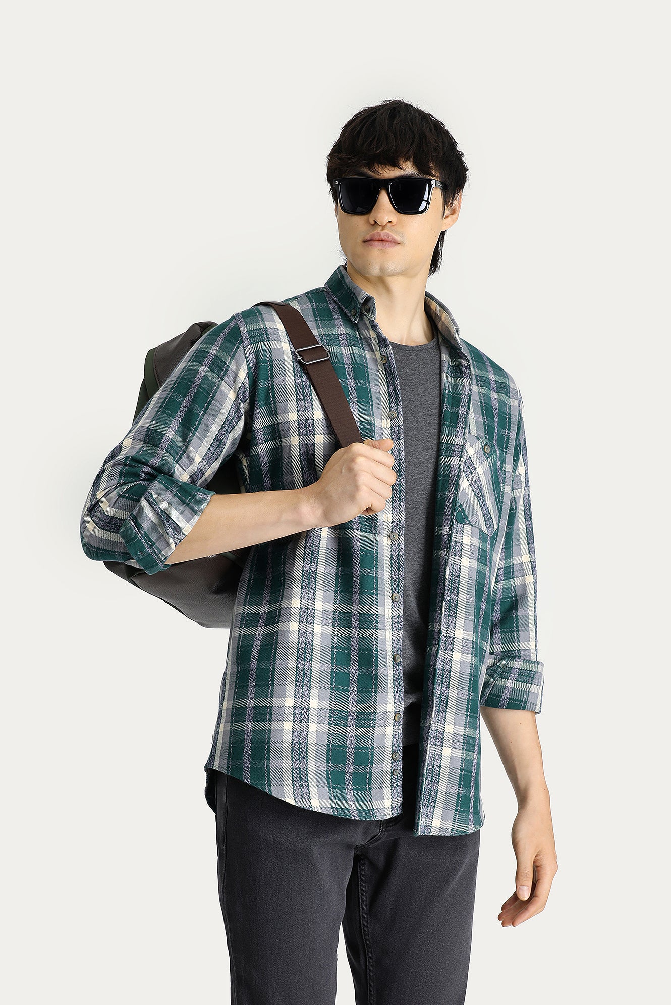 Koyu Yeşil Uzun Kol Regular Fit Ekose Oduncu Pamuk Gömlek