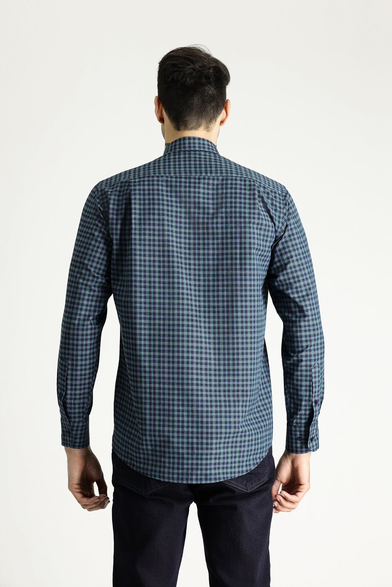 Koyu Yeşil Uzun Kol Regular Fit Ekose Pamuklu Kolay Ütülenebilir Düğmeli Yaka Gömlek