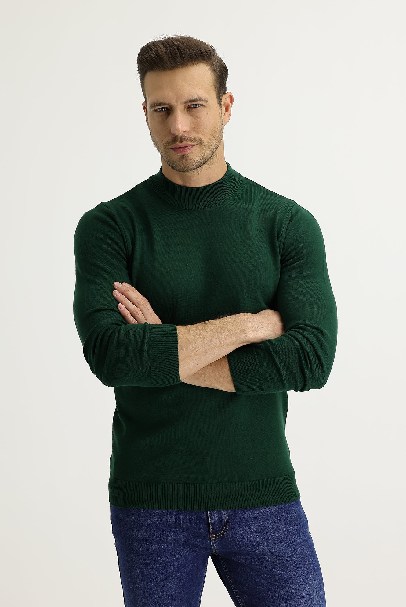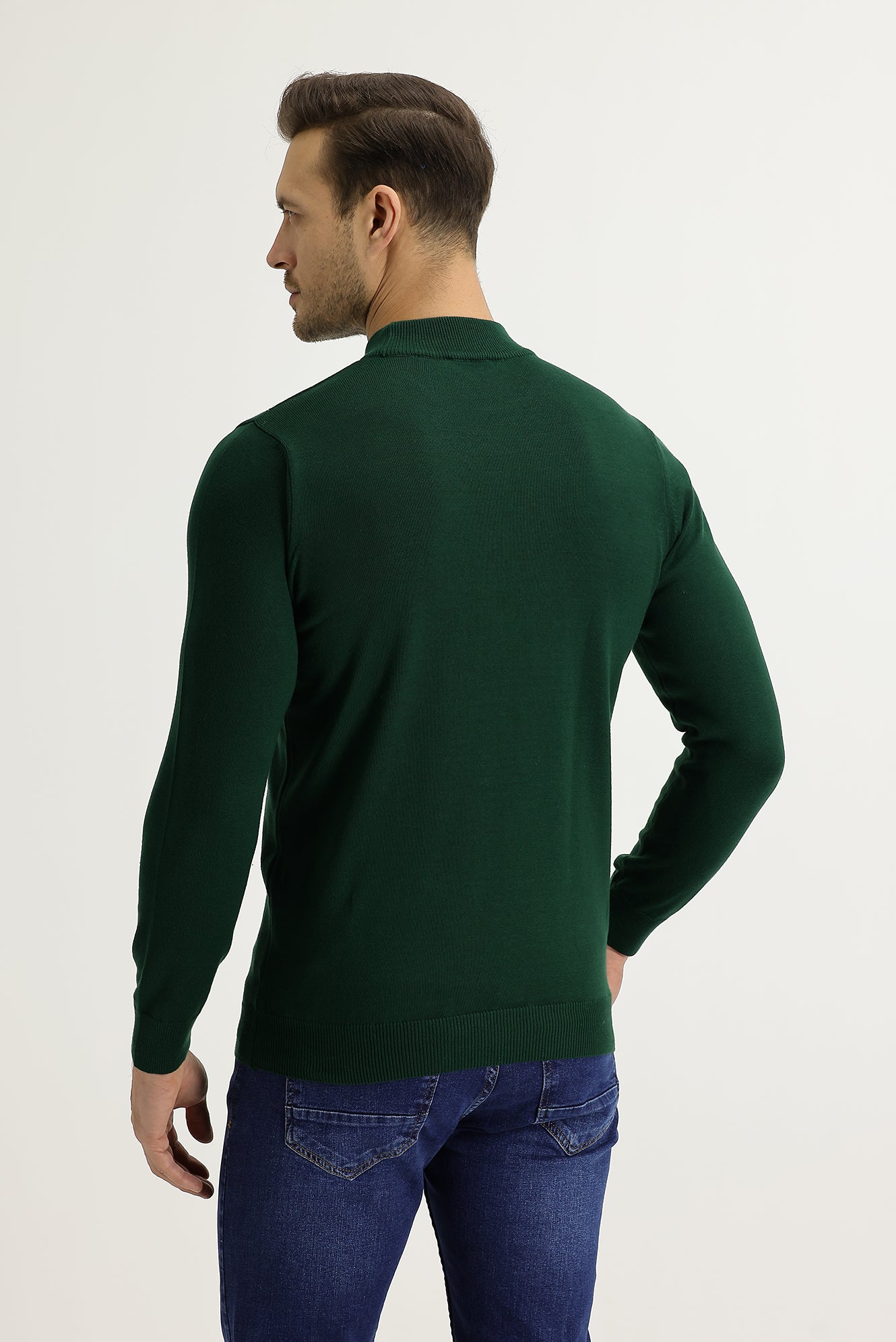 Koyu Yeşil Yarım Balıkçı Yaka Regular Fit Triko Kazak