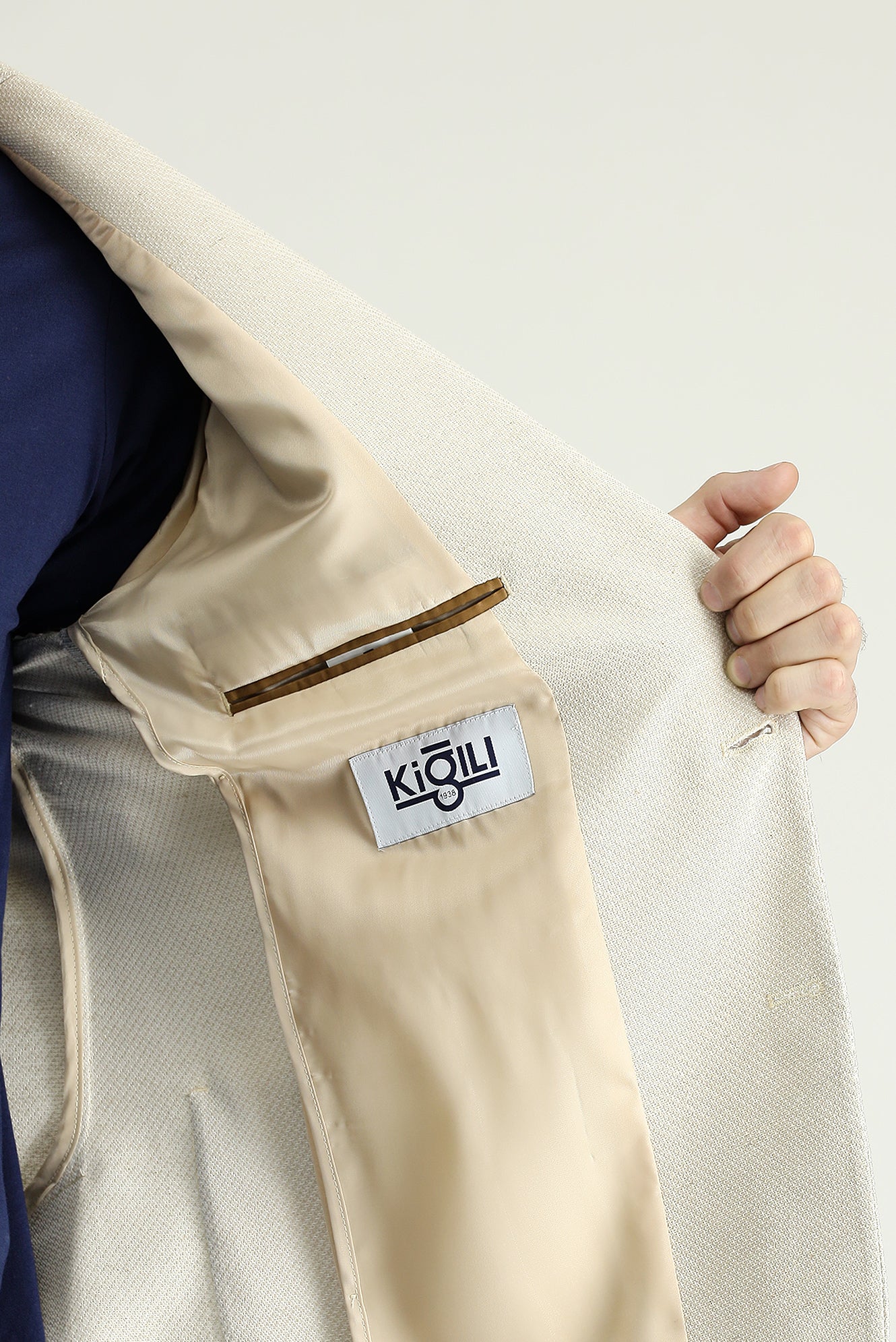 Krem 8 Drop Muscle Fit Uzun Atletik Kesim Klasik Desenli Keten Karışımlı Ceket
