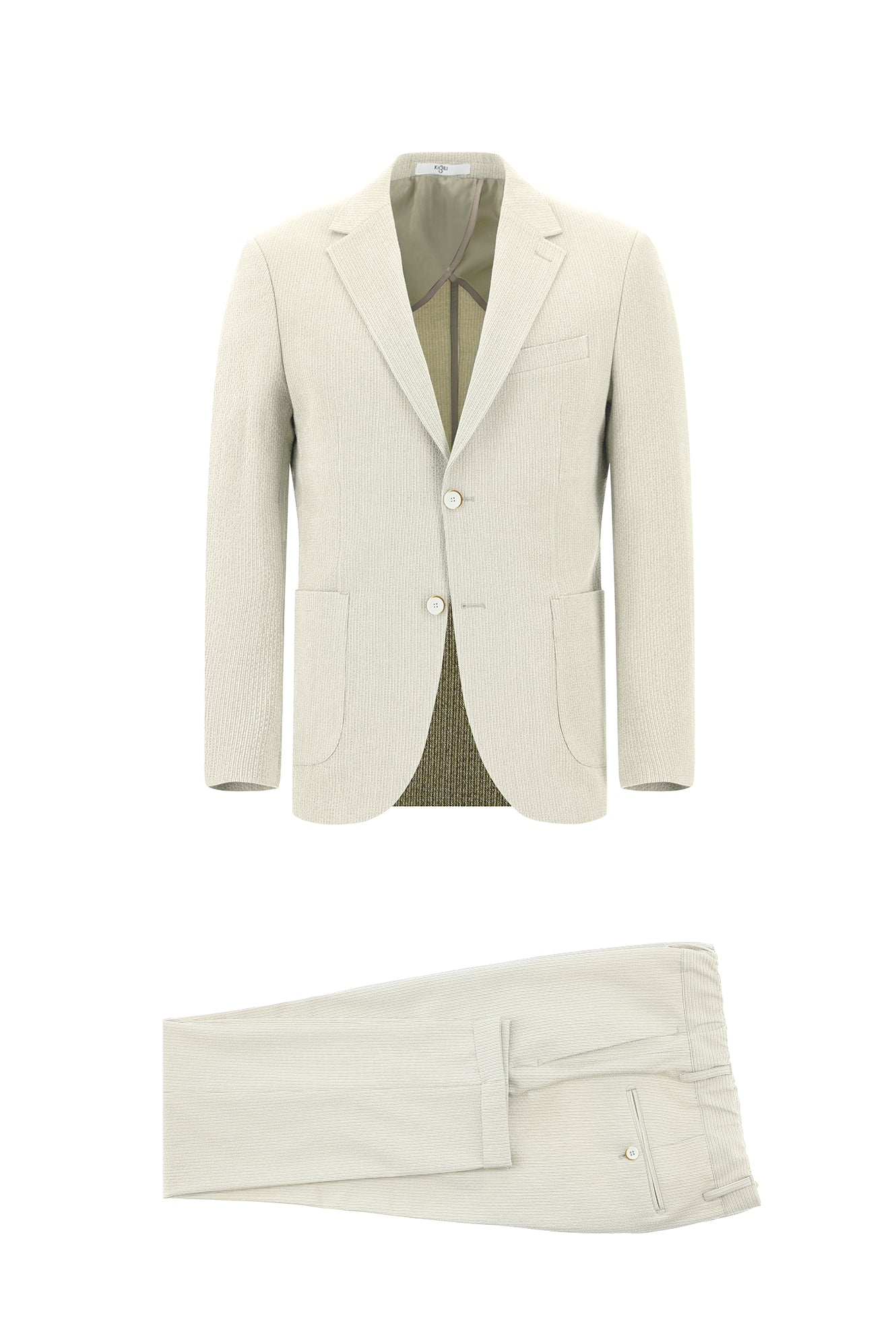 Krem 6 Drop Regular Fit Standart Kesim Çizgili Beli Lastikli İpli Takım Elbise