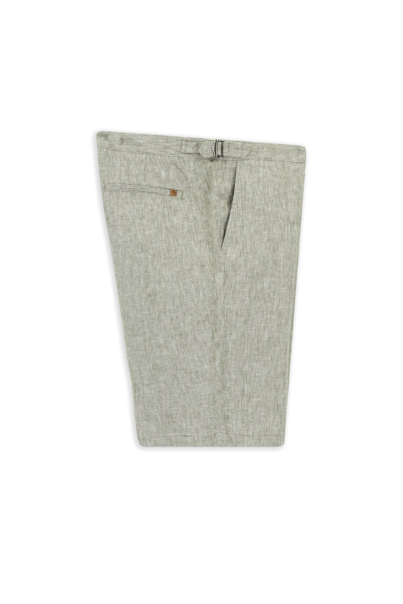 Küf Yeşili 6 Drop Regular Fit Standart Kesim Tokalı Keten Bermuda Şort