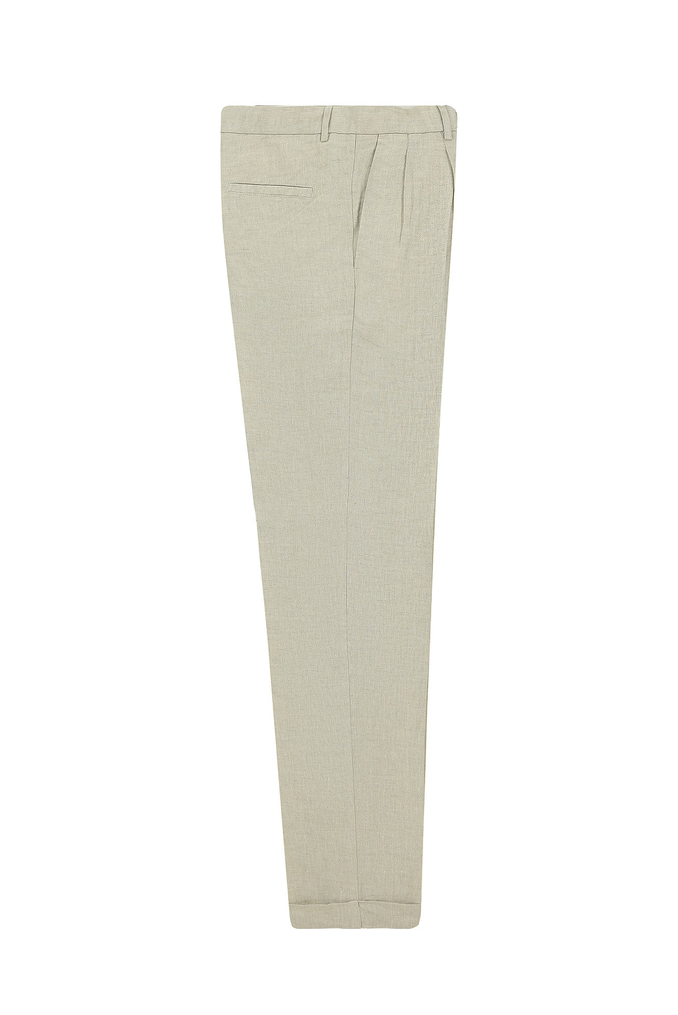 Kum Oversize Desenli Pileli Keten Klasik Kumaş Pantolon