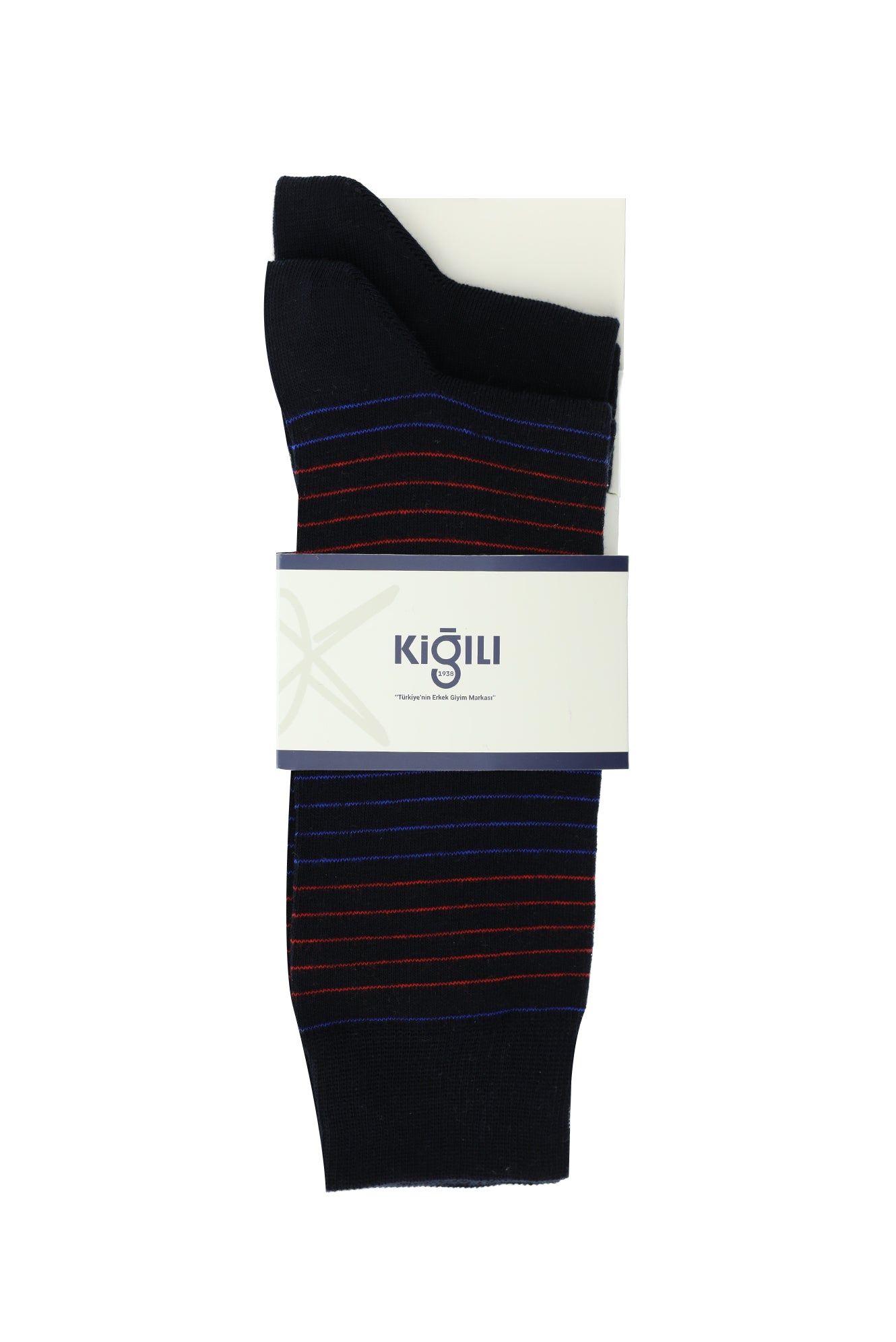 Lacivert 2'li Çizgili Pamuklu Çorap Seti