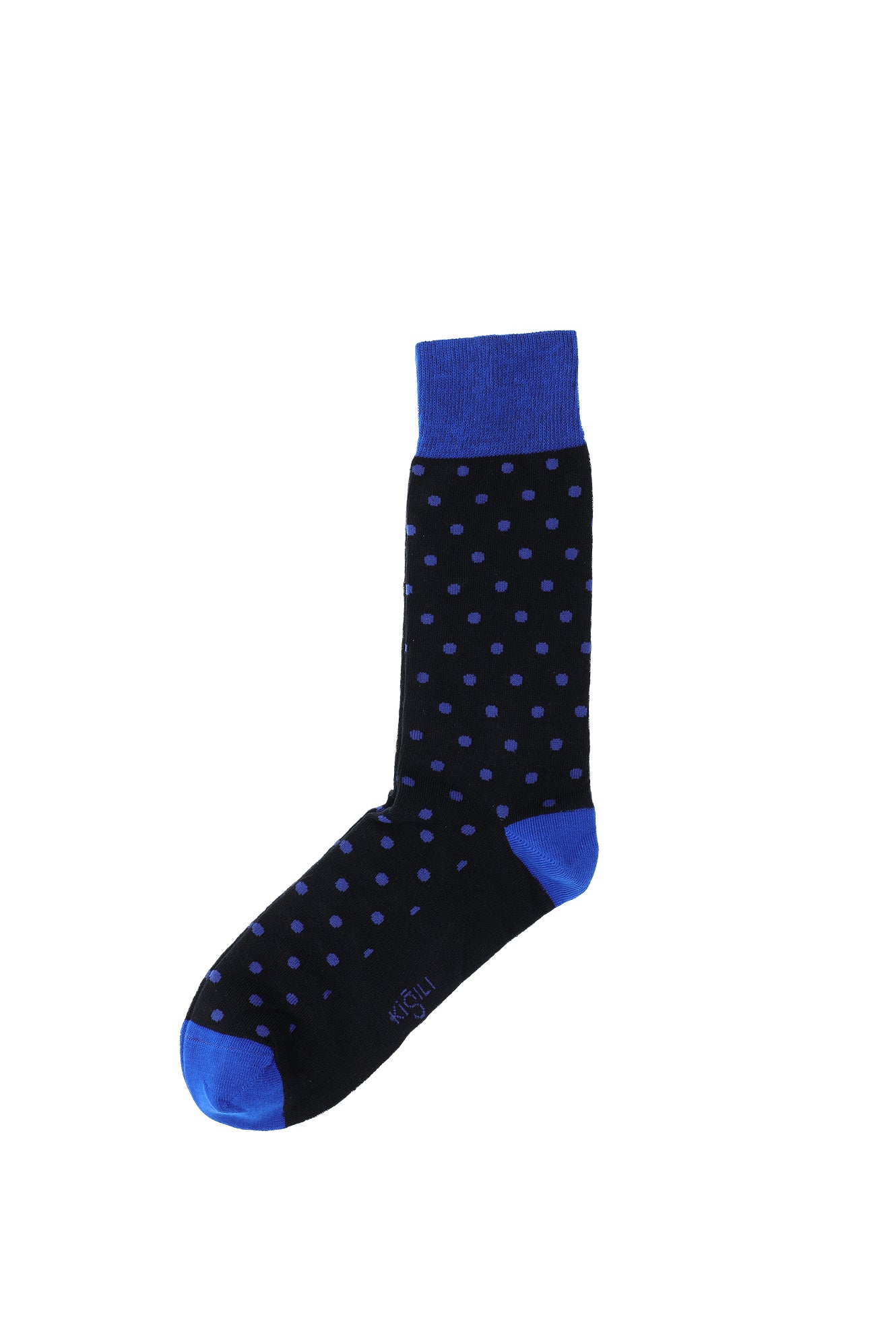Lacivert Tekli Puantiye Desenli Pamuklu Dikişsiz Çorap