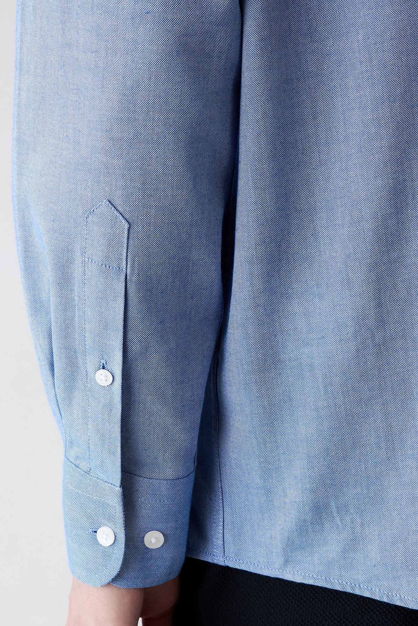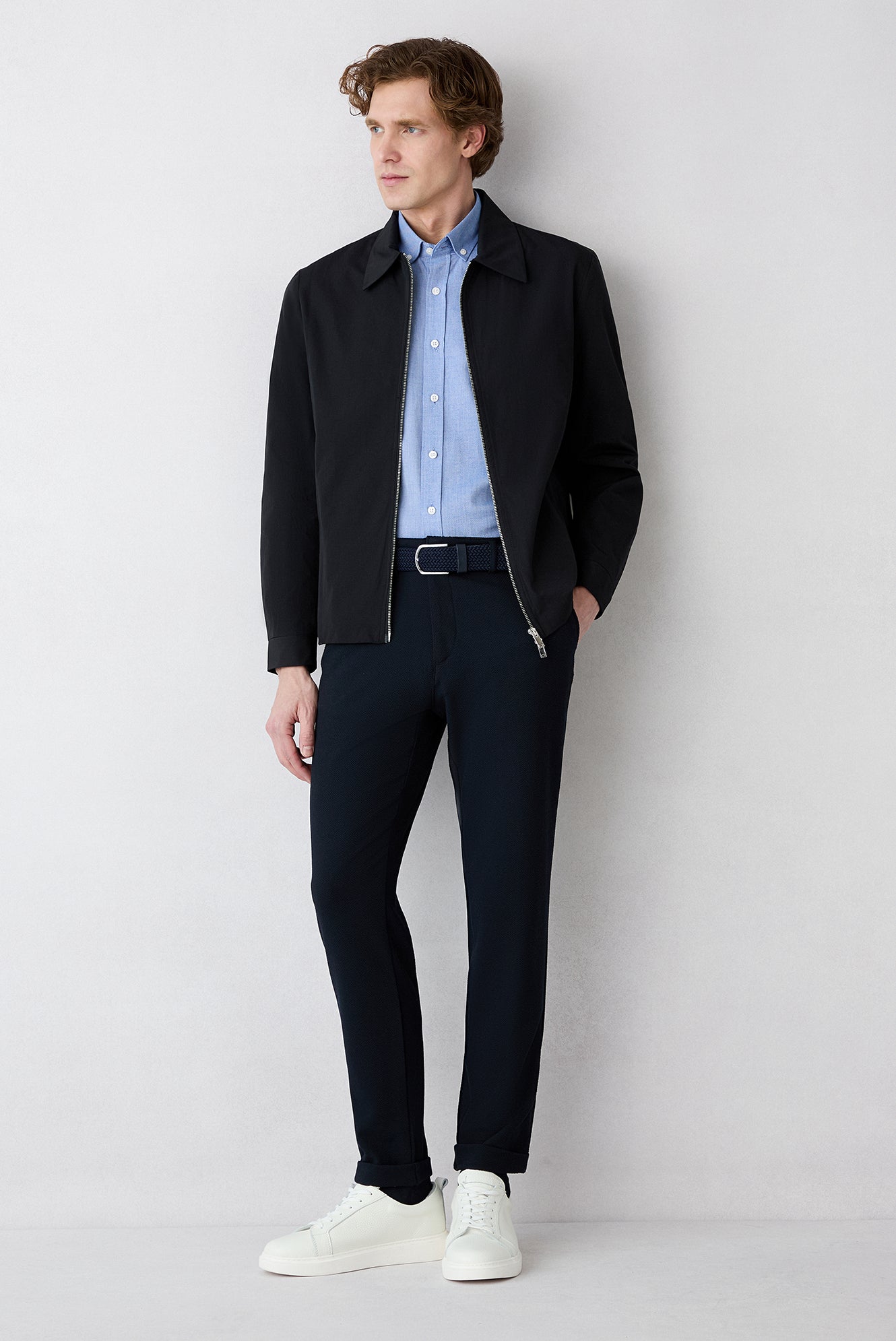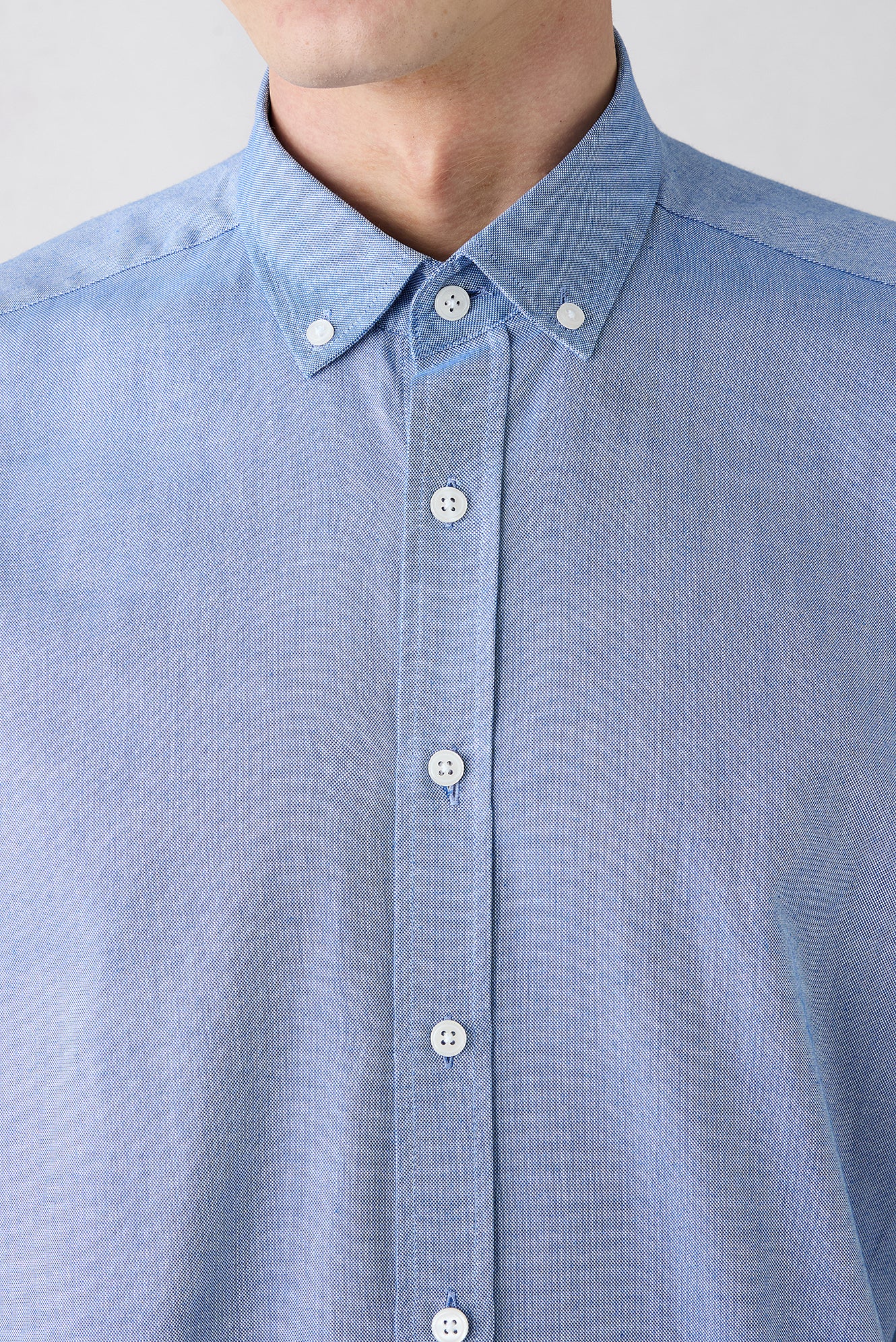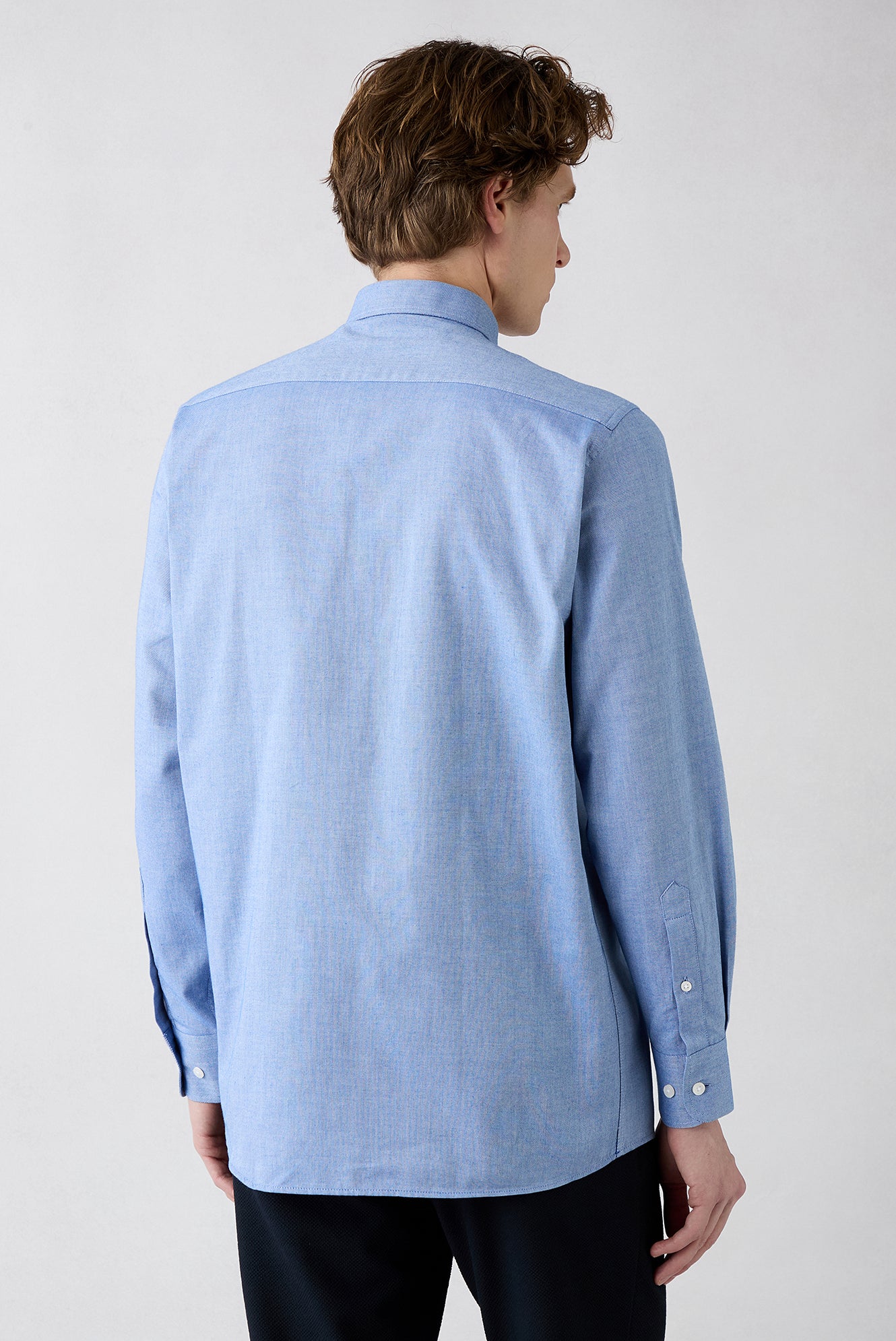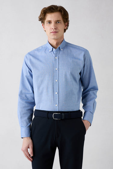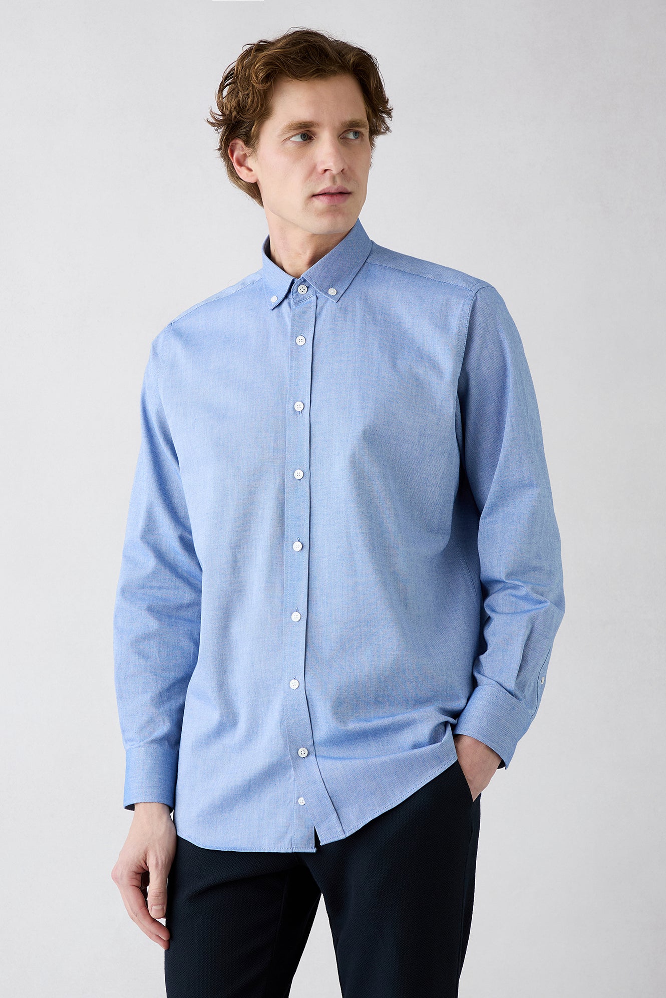 Lacivert Uzun Kol Regular Fit Düğmeli Yaka Pamuk Oxford 4 Mevsim Gömlek