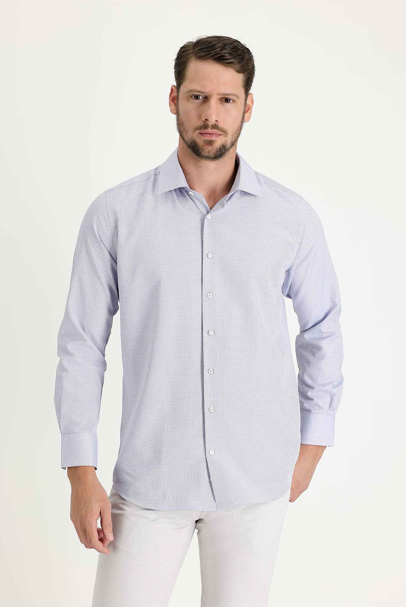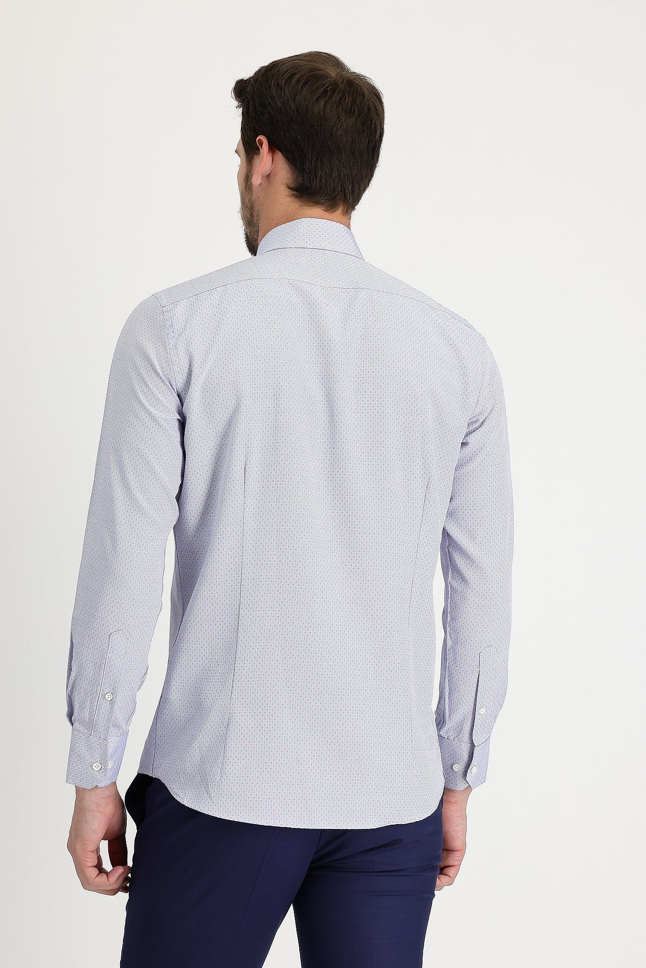 Lacivert Uzun Kol Slim Fit Desenli Gömlek