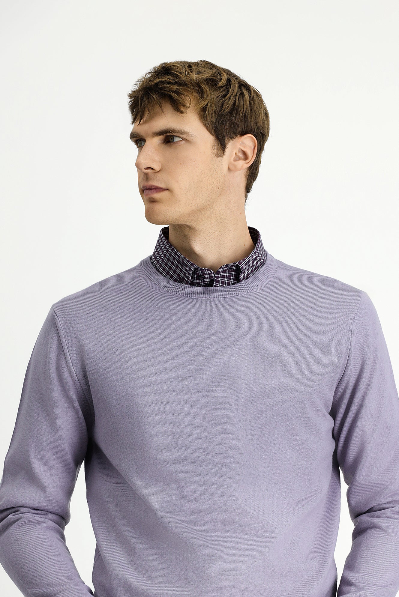 Lila Bisiklet Yaka Regular Fit Yünlü Triko Kazak