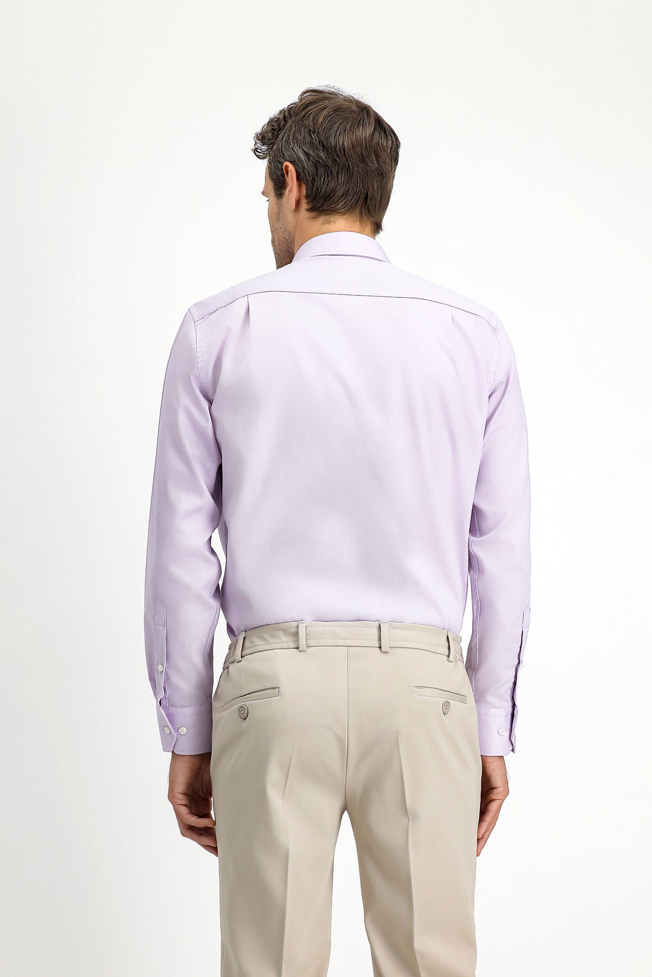 Lila Uzun Kol Non Iron Saten Klasik Cepli Pamuklu Gömlek