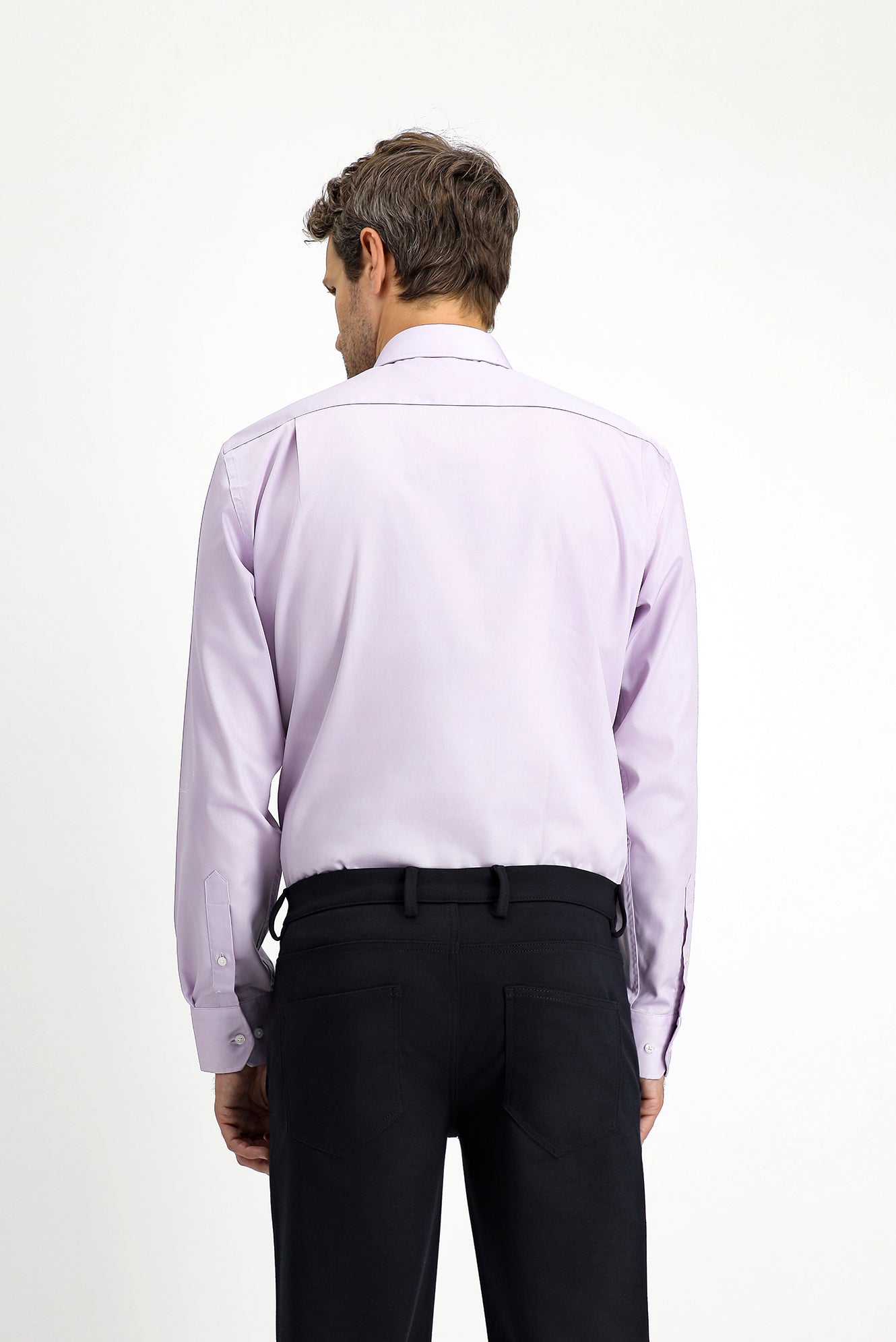 Lila Uzun Kol Non Iron Saten Klasik Pamuklu Gömlek