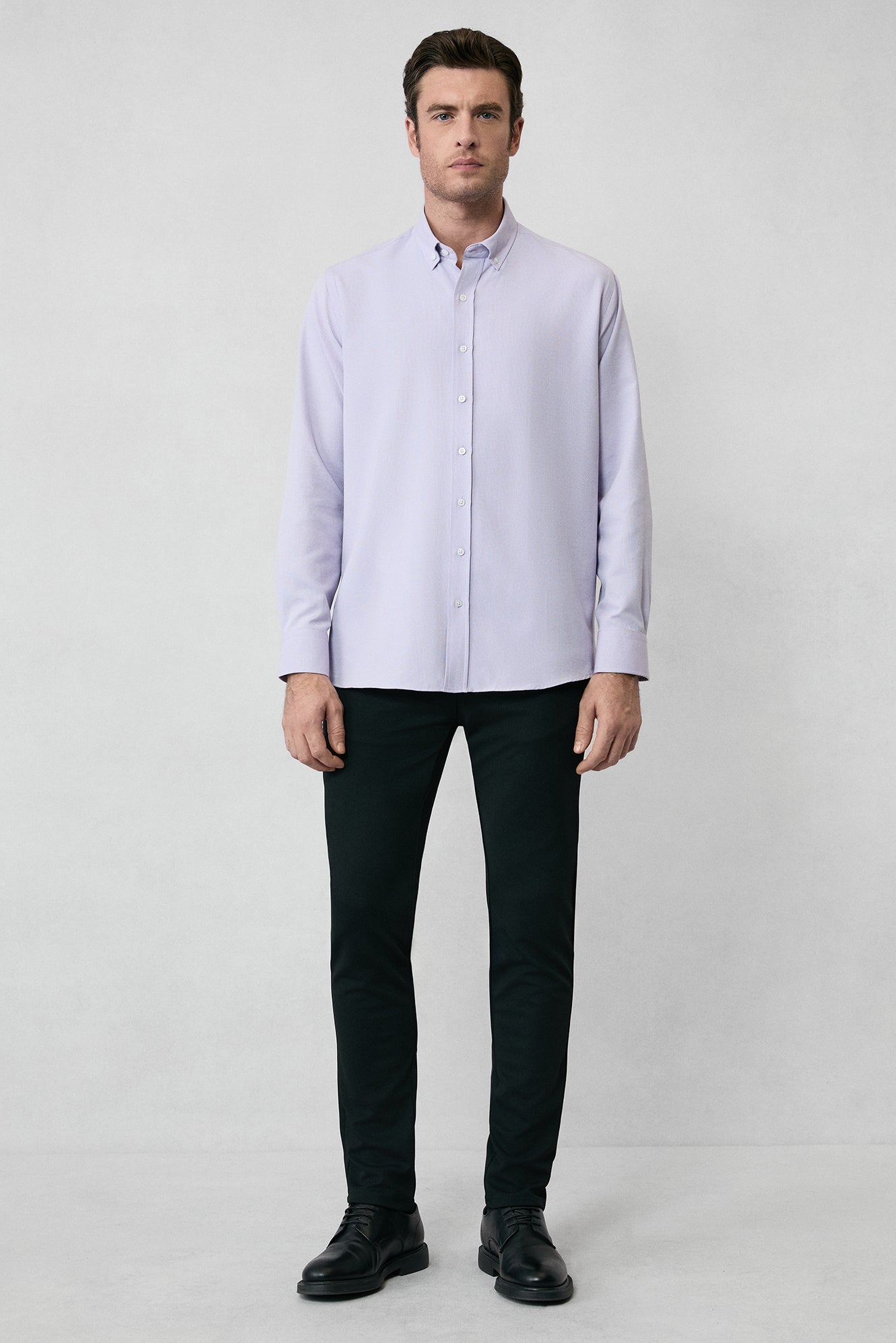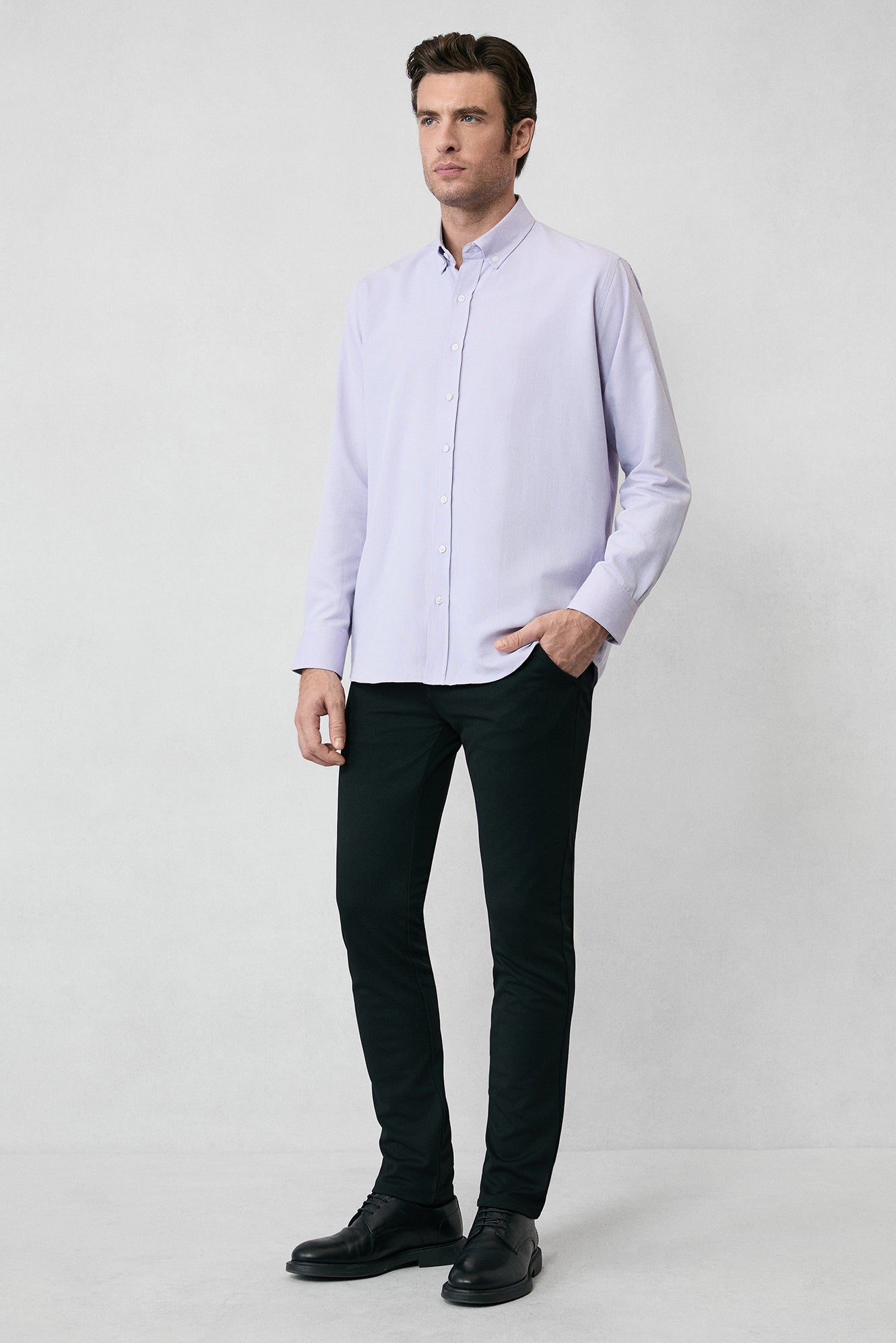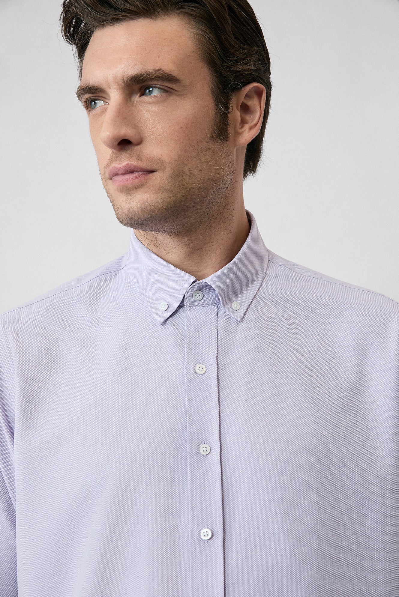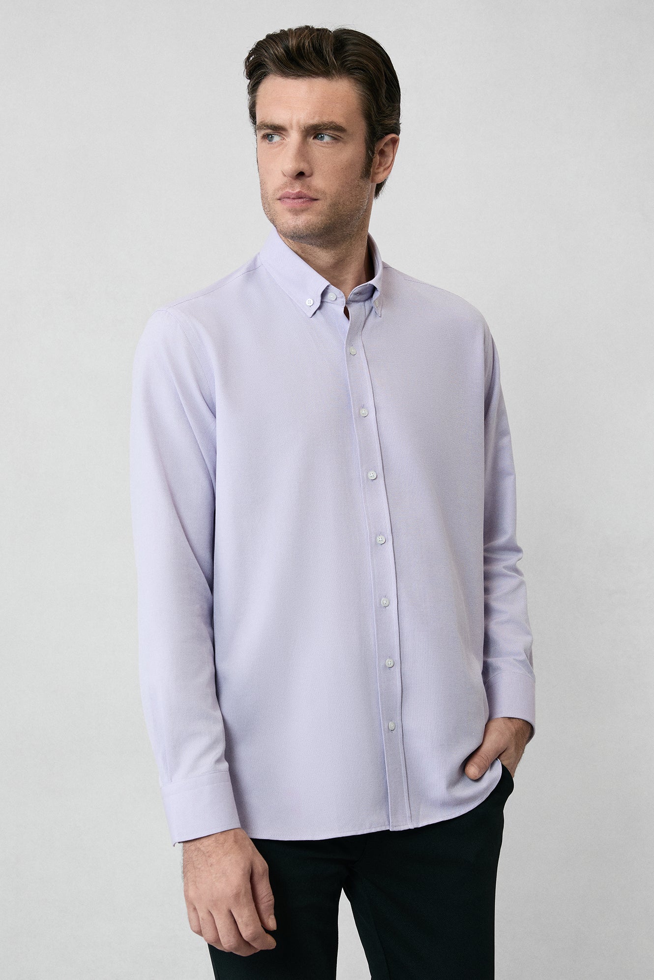Lila Uzun Kol Regular Fit Düğmeli Yaka Pamuklu Kolay Ütülenebilir Oxford 4 Mevsim Gömlek