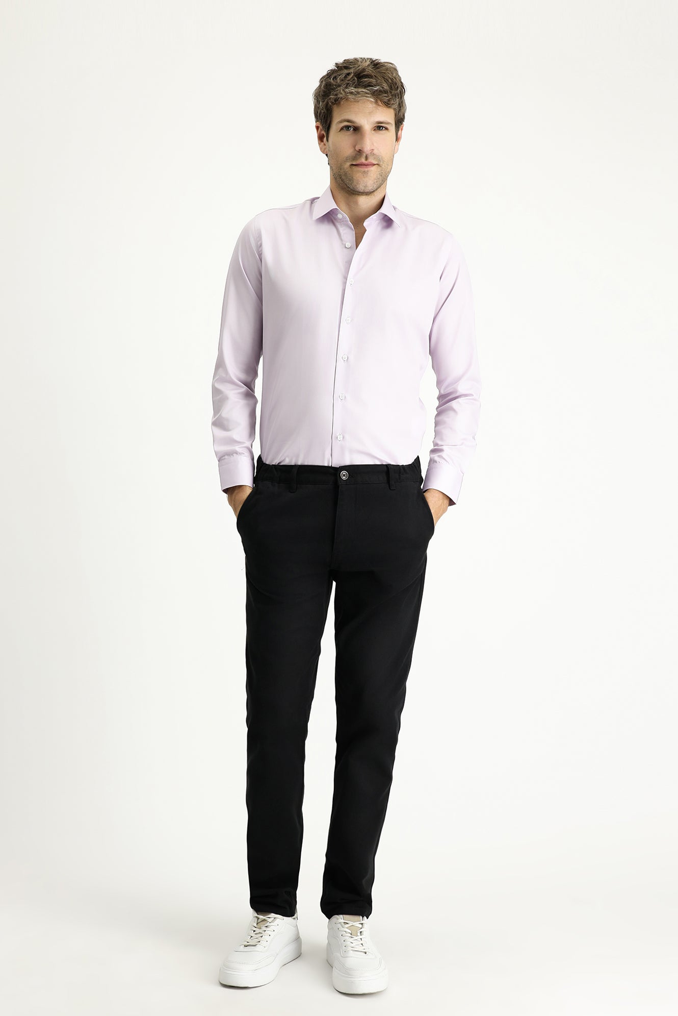 Lila Uzun Kol Slim Fit Dar Kesim Klasik Non Iron Saten Pamuklu Gömlek