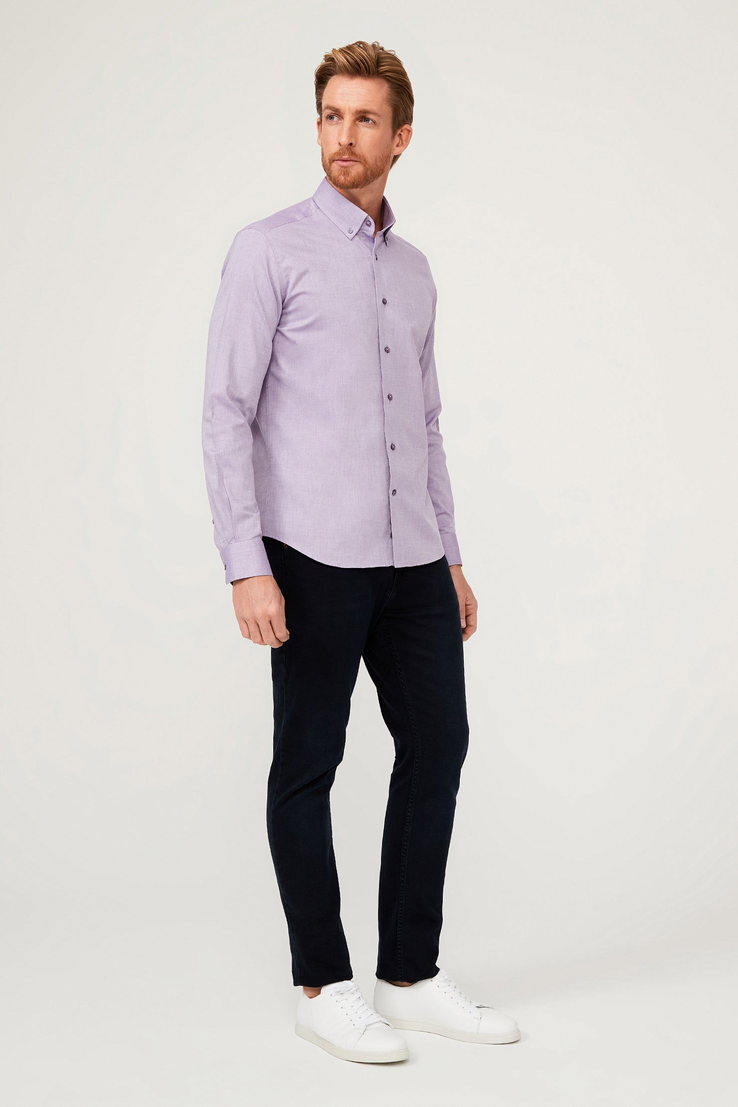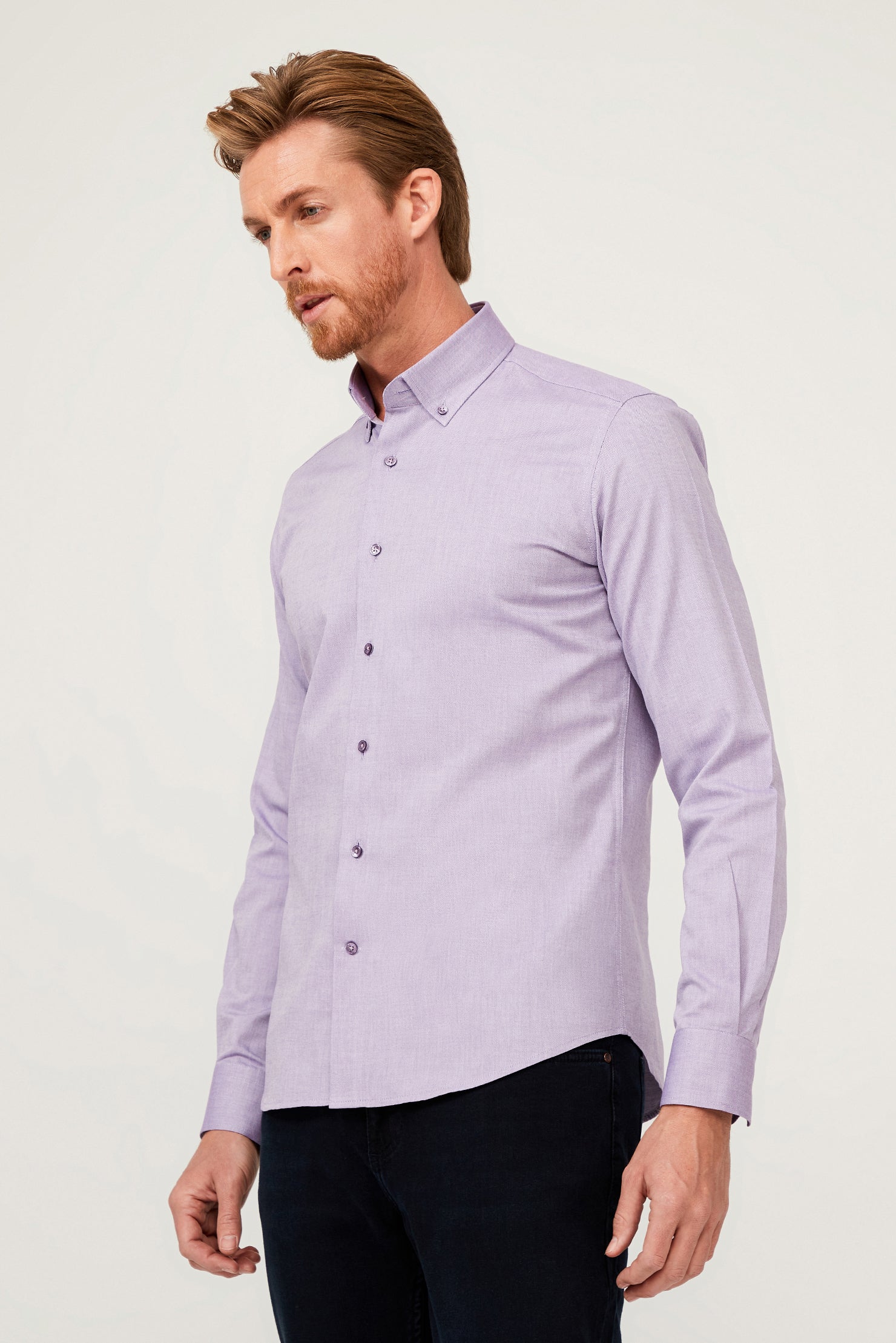Lila Uzun Kol Slim Fit Dar Kesim Pamuk Gömlek