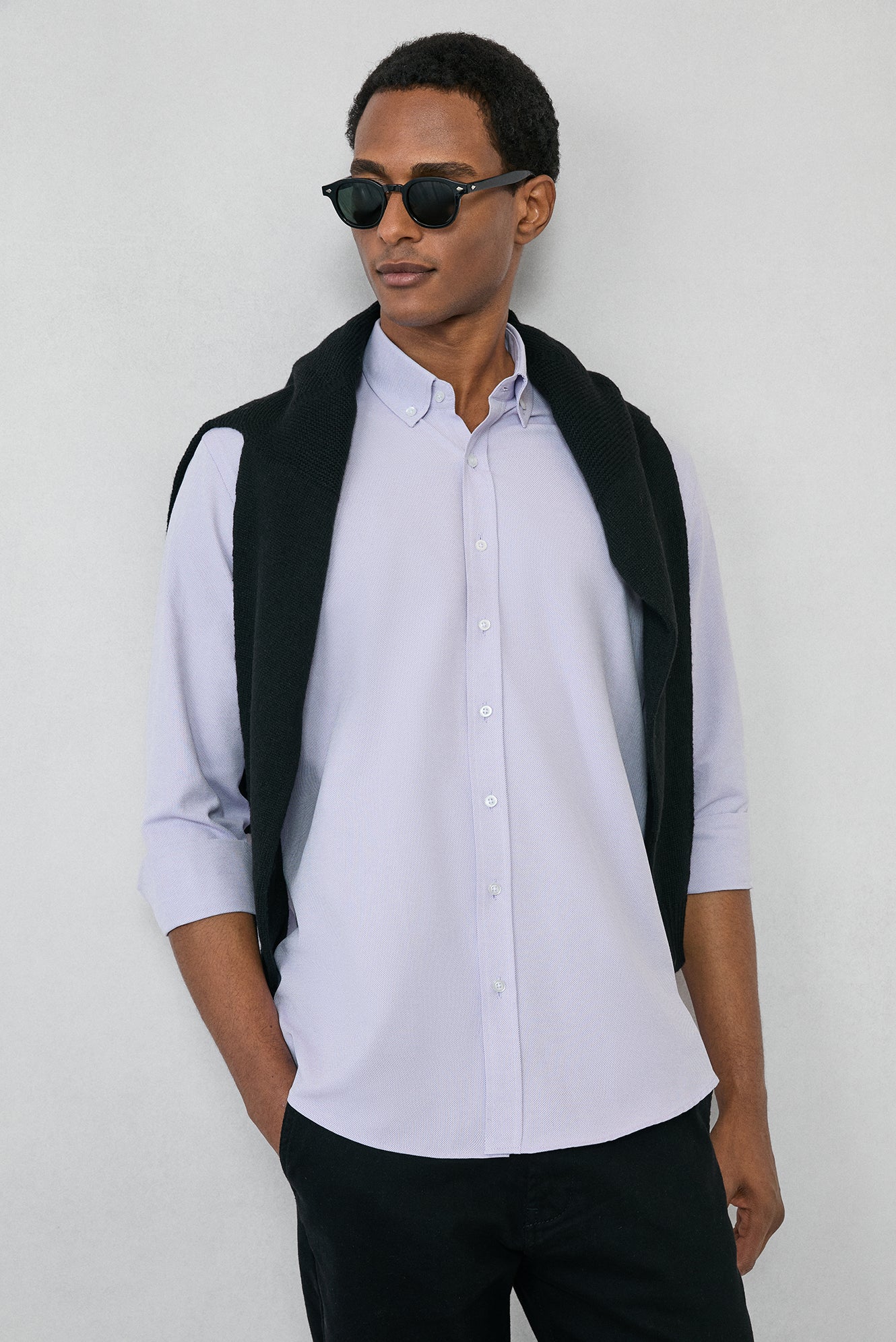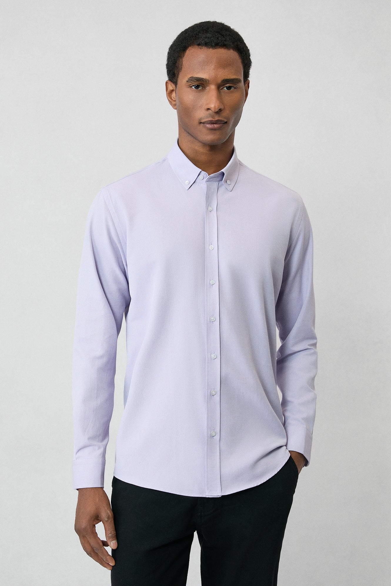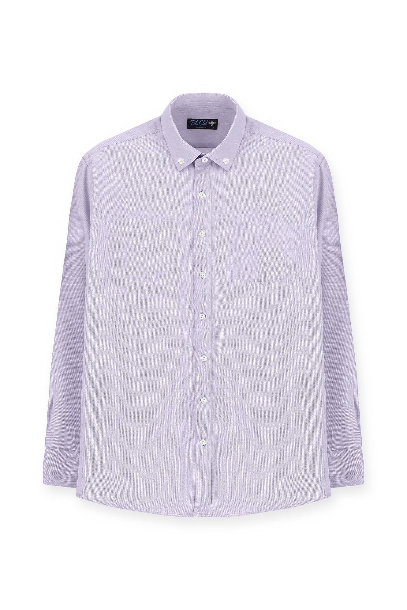 Lila Uzun Kol Slim Fit Düğmeli Yaka Pamuklu Kolay Ütülenebilir 4 Mevsim Oxford Gömlek