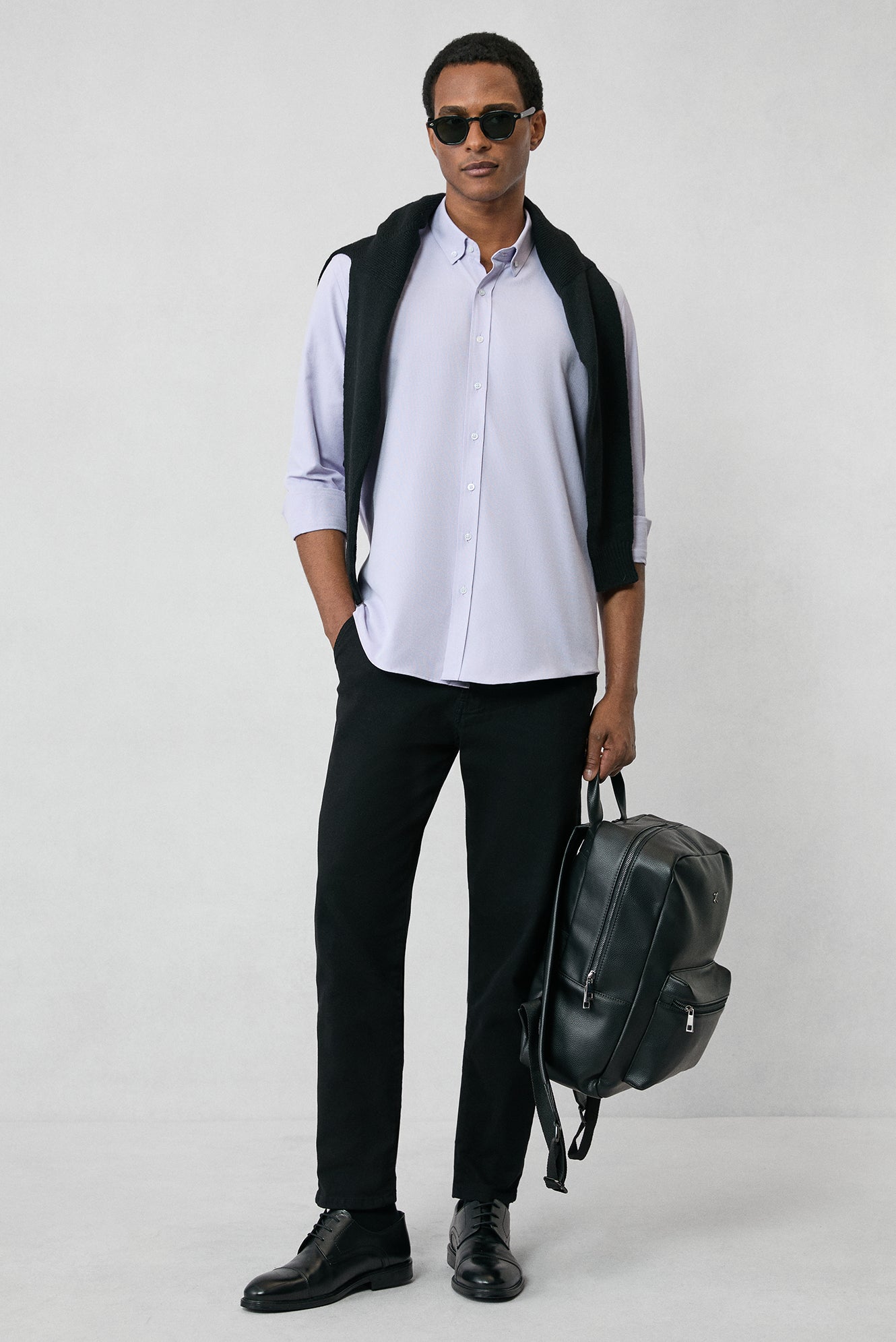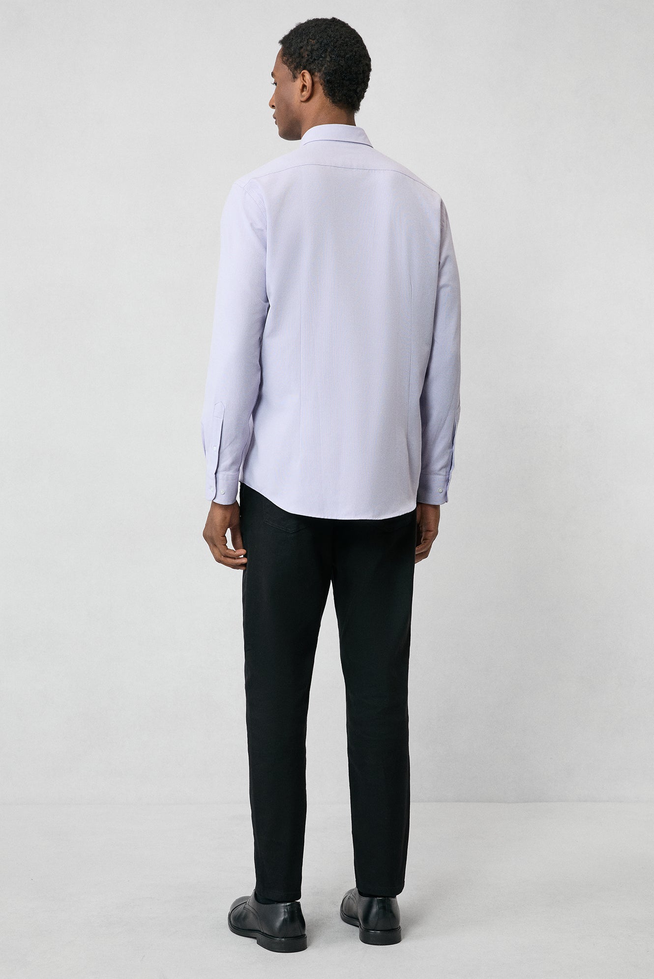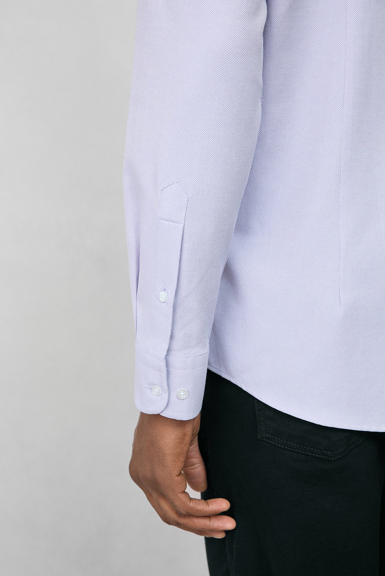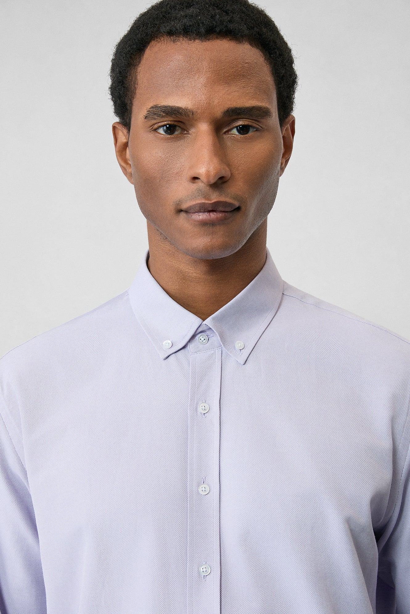 Lila Uzun Kol Slim Fit Düğmeli Yaka Pamuklu Kolay Ütülenebilir 4 Mevsim Oxford Gömlek