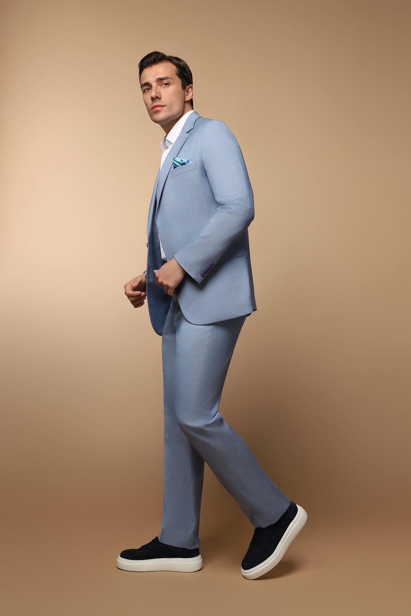 Mavi Regular Fit Klasik Desenli Takım Elbise